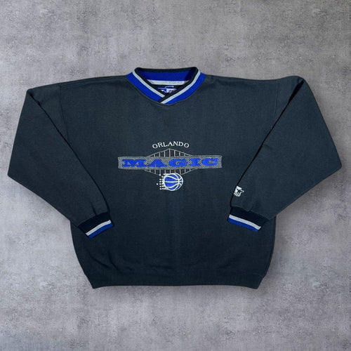 Vintage Starter NBA Orlando Magic Embroidered Basketball Grey Blue Sweatshirt
