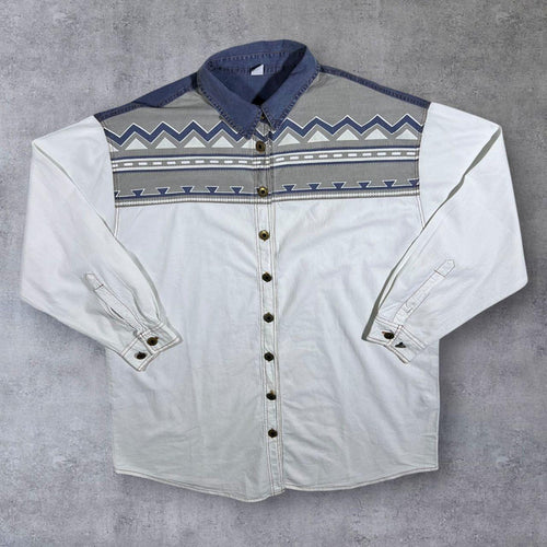 Vintage Forbidden Co. Cowboy Western White Blue Long Sleeve Cotton Shirt