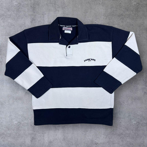 Vintage Aem'Kai Sport Hip Hop Y2K Navy Blue White Stripe Collared Sweatshirt