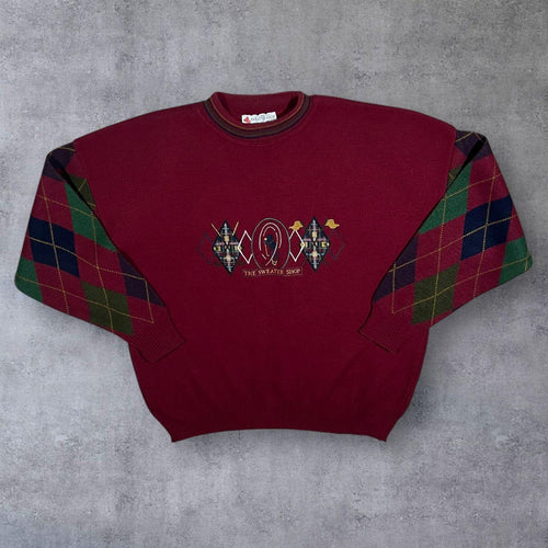 Vintage 90's The Sweater Shop "Golf" Embroidered Argyle Check Acrylic Knit Jumper
