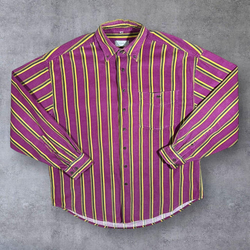 Vintage Canda C&A Pink Yellow Striped Corduroy Long Sleeve Button-Up Cotton Shirt