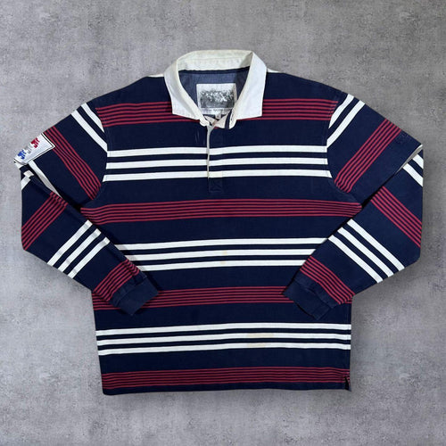 Cotton Traders Classics Three Lions Multi Striped Long Sleeve Rugby Polo Shirt