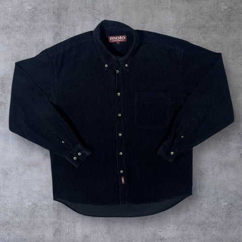 Vintage Moto Jeanswear Classic Black Corduroy Cotton Long Sleeve Button-Up Shirt