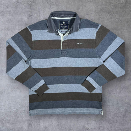 Hackett Grey Brown Mix Striped Long Sleeve Cotton Polo Shirt