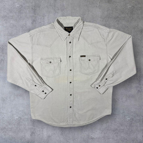 Vintage Wrangler Western Beige Cream Corduroy Popper Long Sleeve Cotton Shirt