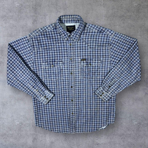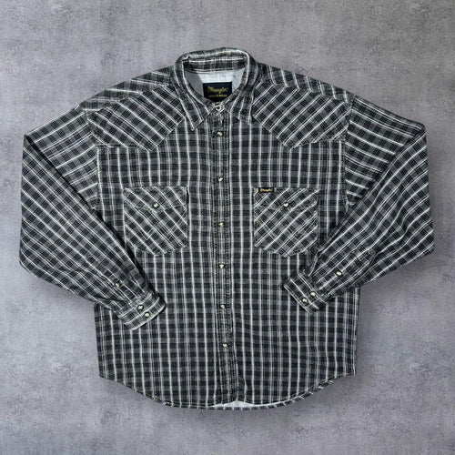 Vintage Wrangler Western Plaid Check Corduroy Popper Long Sleeve Cotton Shirt