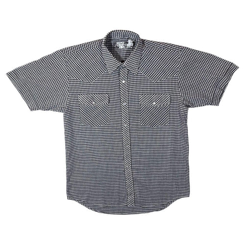 Vintage Holpen Cowboy Western Black White Check Short Sleeve Popper Cotton Blend Shirt