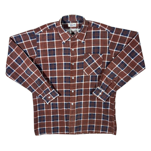 Vintage Friendship Brown Navy White Plaid Check Long Sleeve Flannel Shirt