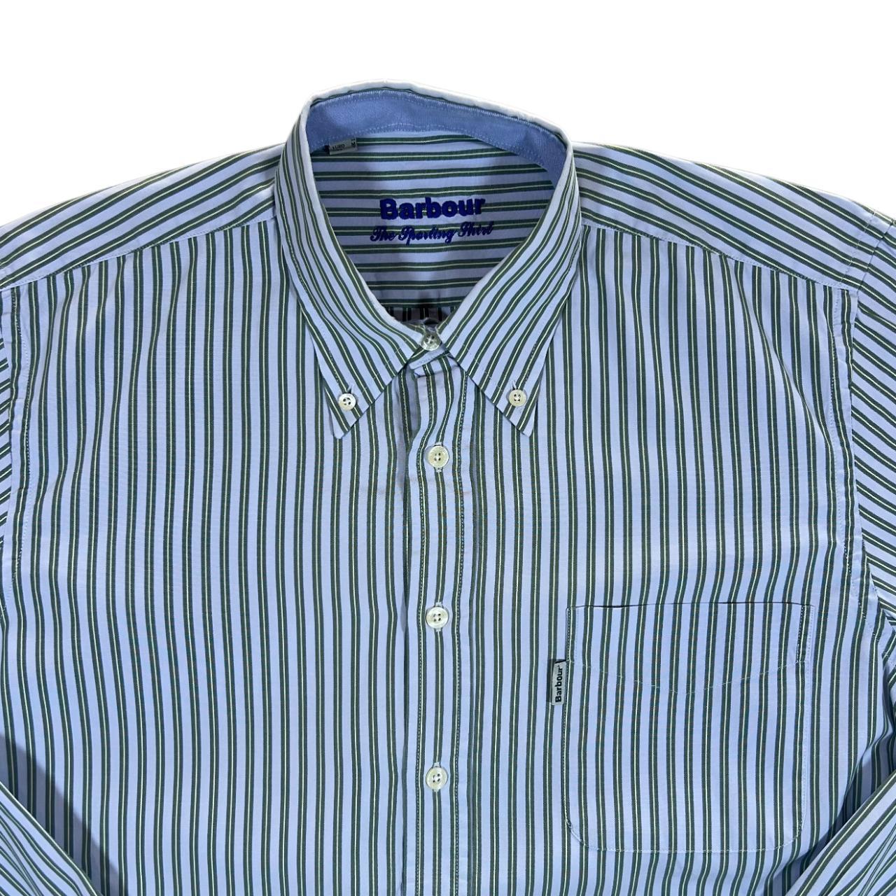 Barbour "The Sporting Shirt" Blue Green Striped Long Sleeve Button-Up Cotton Shirt