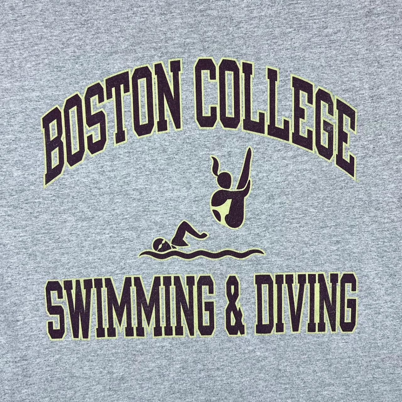 Champion BOSTON COLLEGE "Swimming & Diving" College Spellout Graphic Grey T-ShirtSize: Medium (See measurements)Colour: GreyDetail: Graphic spellout print to front Condition: Light general wear as expectedMeasurements: Pit to Pit: 20”Length: 28"Shoulder to Cuff: 8"#11505