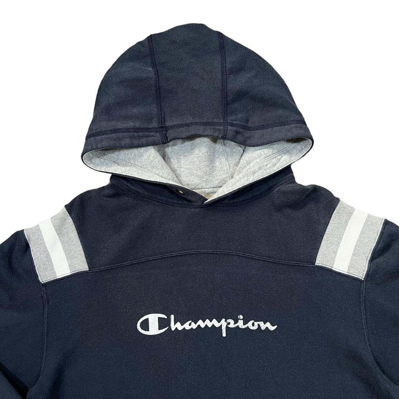 CHAMPION Classic Logo Spellout Graphic Navy Blue Pullover Hoodie