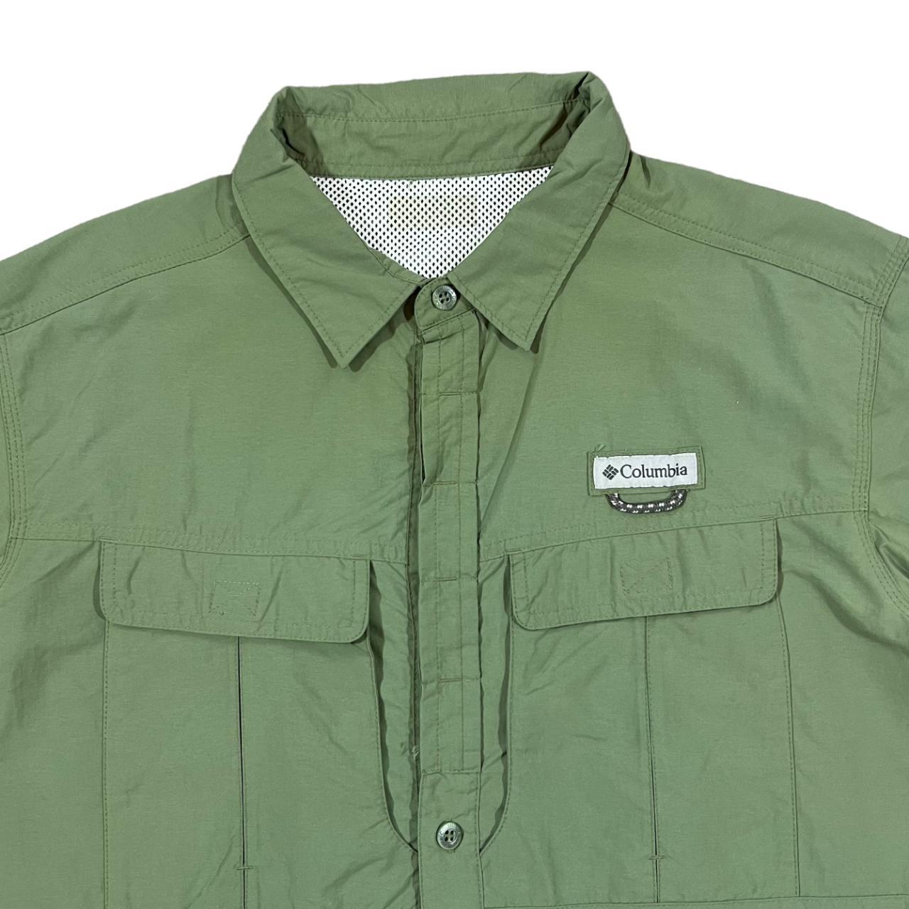 COLUMBIA SPORTSWEAR Omni-Shield Khaki Green Outdoor Utility Short Sleeve Tactel Polyamide Shirt