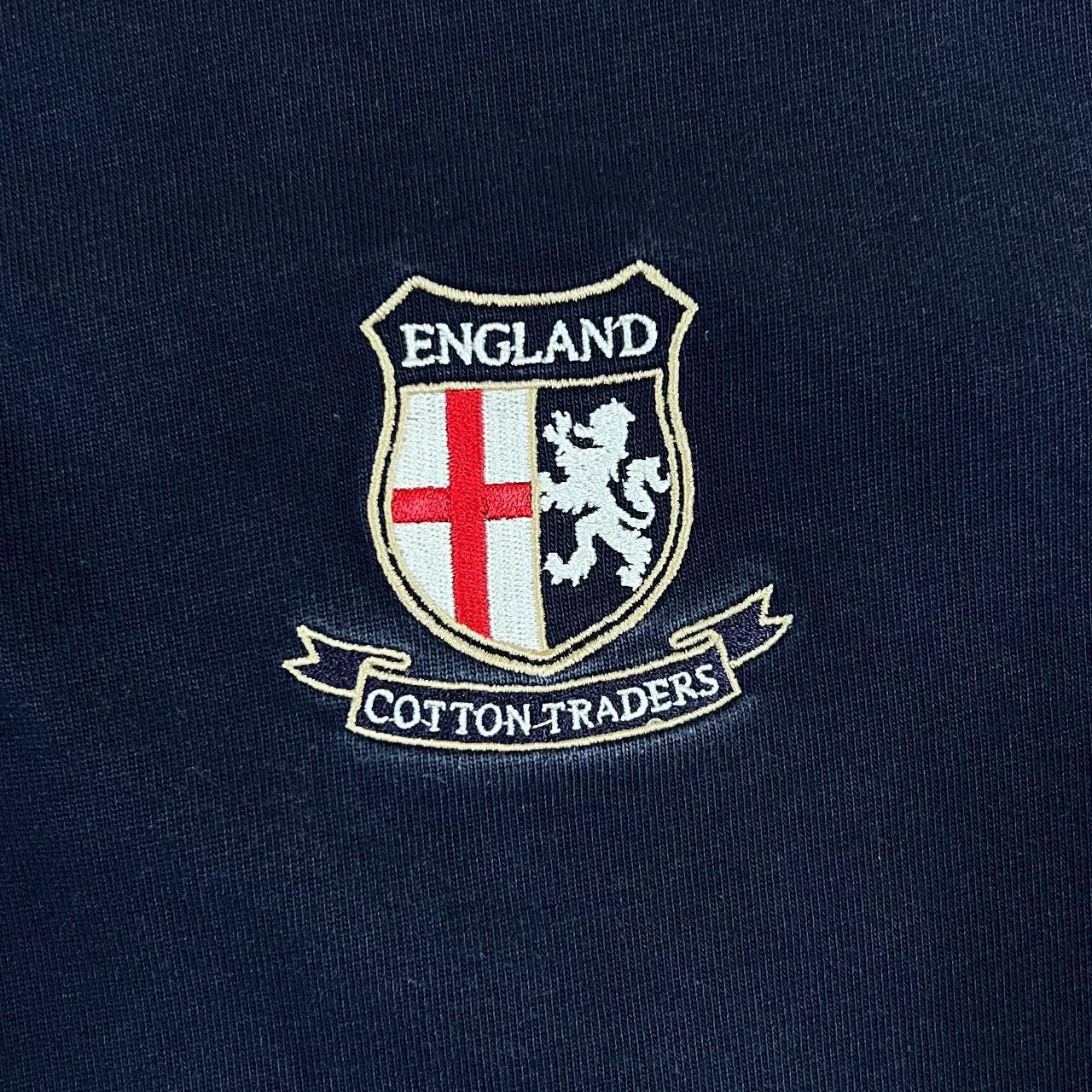 Cotton Traders x ENGLAND RUGBY Embroidered Crest Logo Striped Sleeve Polo Shirt