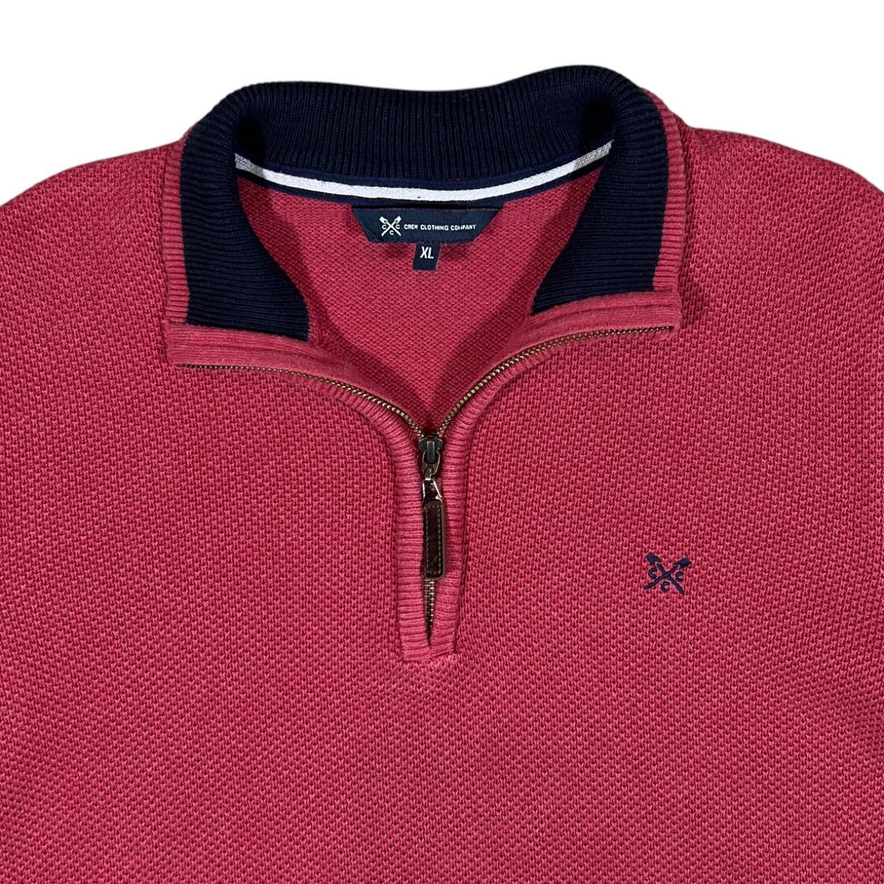 CREW CLOTHING COMPANY Mini Logo Red 1/4 Zip Cotton Knit Sweater Jumper