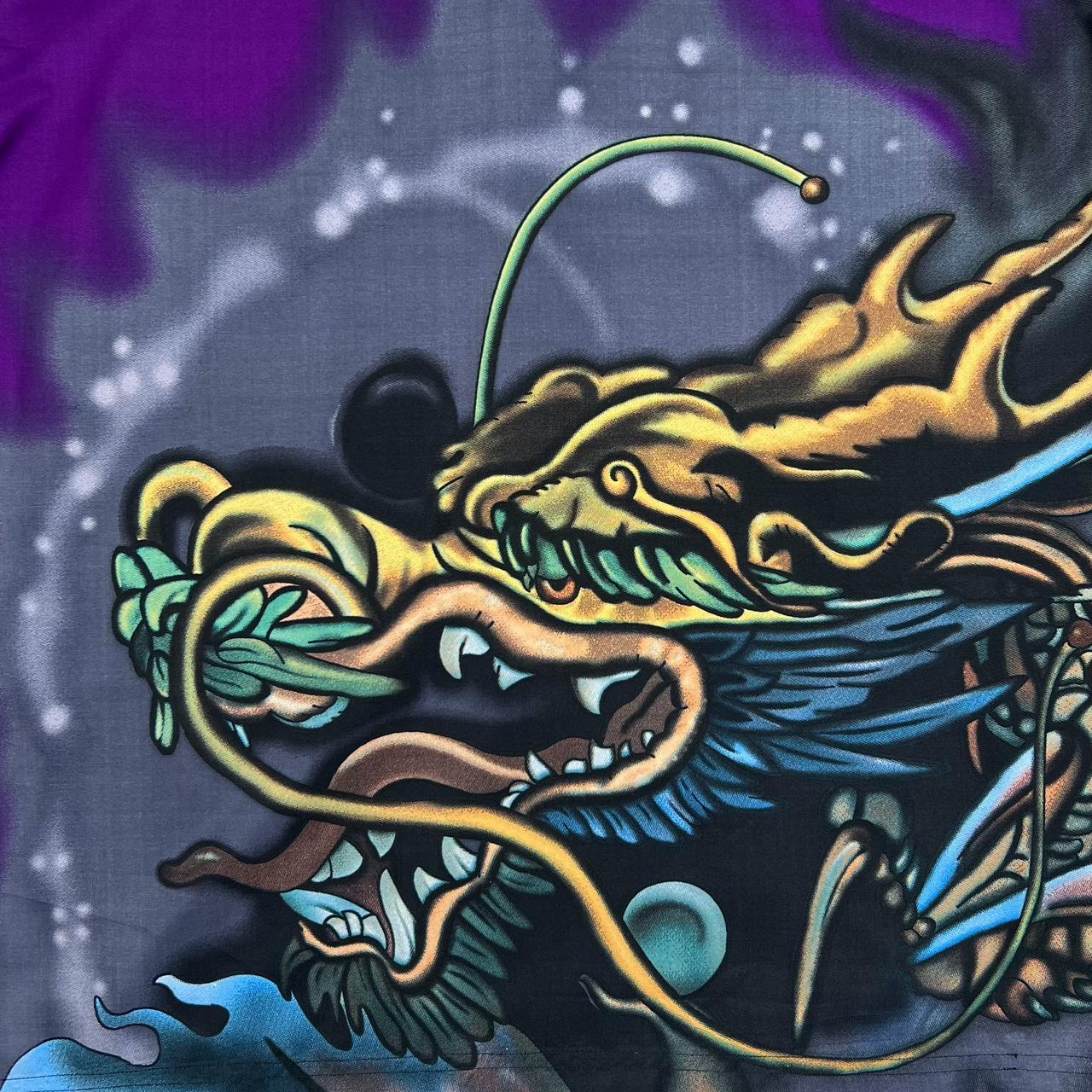 Early 00’s GIORGIO Gothic Tattoo Style Dragon Patterned All-Over Print Polyester Shirt
