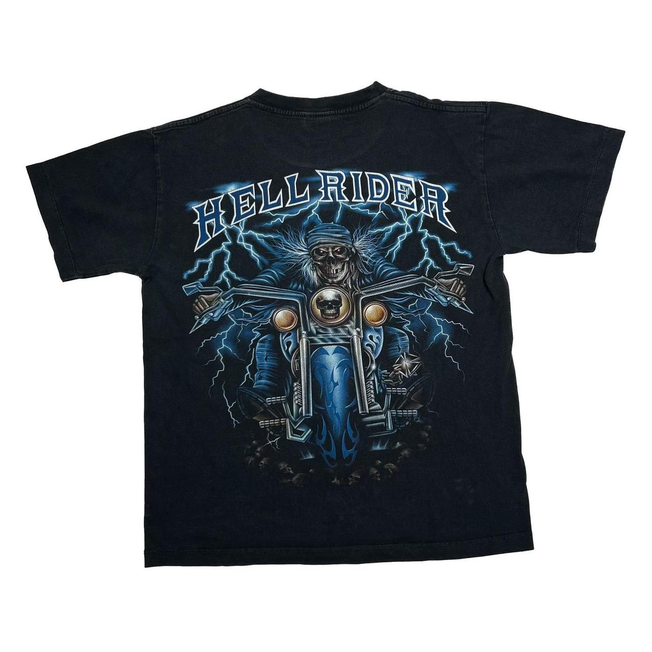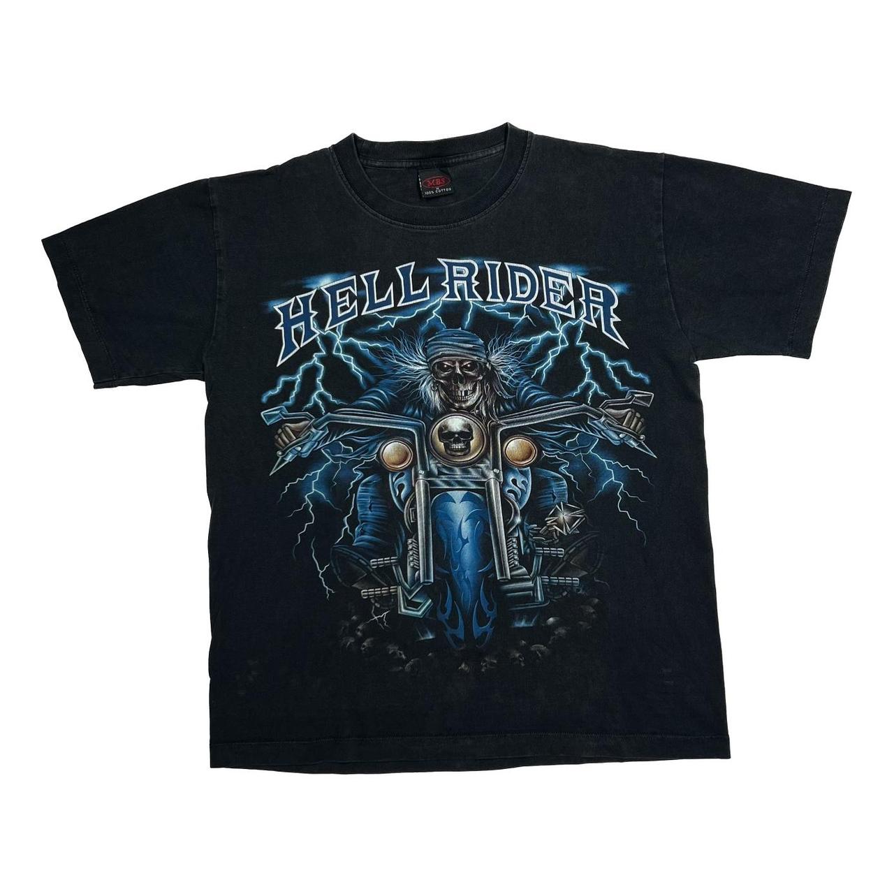Early 00’s MBS “Hell Rider” Gothic Skeleton Biker Spellout Graphic T-Shirt