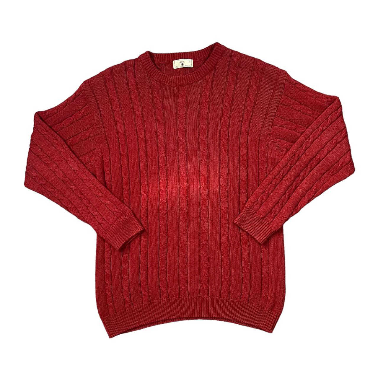 Early 00's BHS Classic Cotton Red Cable Knit Crewneck Sweater Jumper