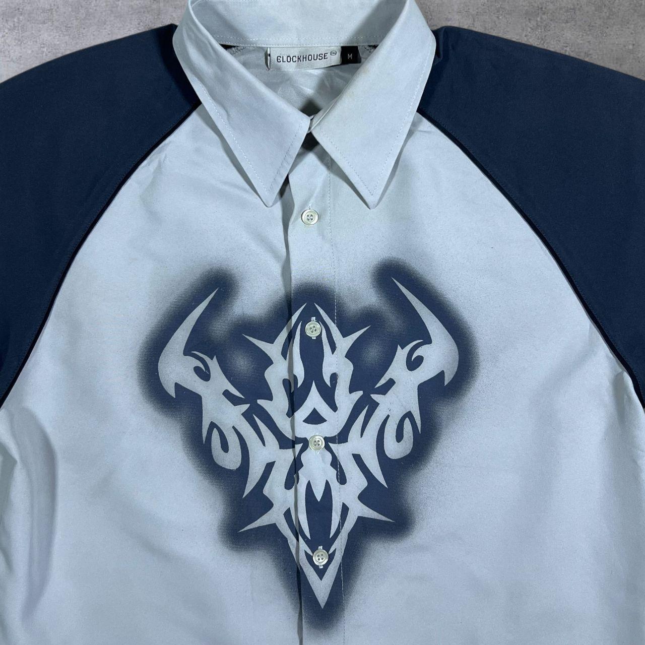 Early 00's Clockhouse Gothic Y2K Tribal Motif Grey Mix Short Sleeve Shirt