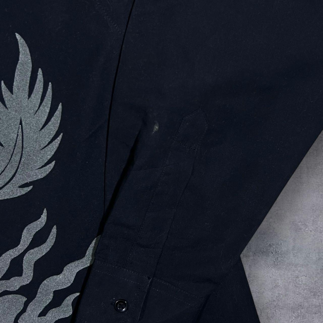 Early 00's Identic Gothic Y2K Dragon Concealed Button Black Long Sleeve Shirt