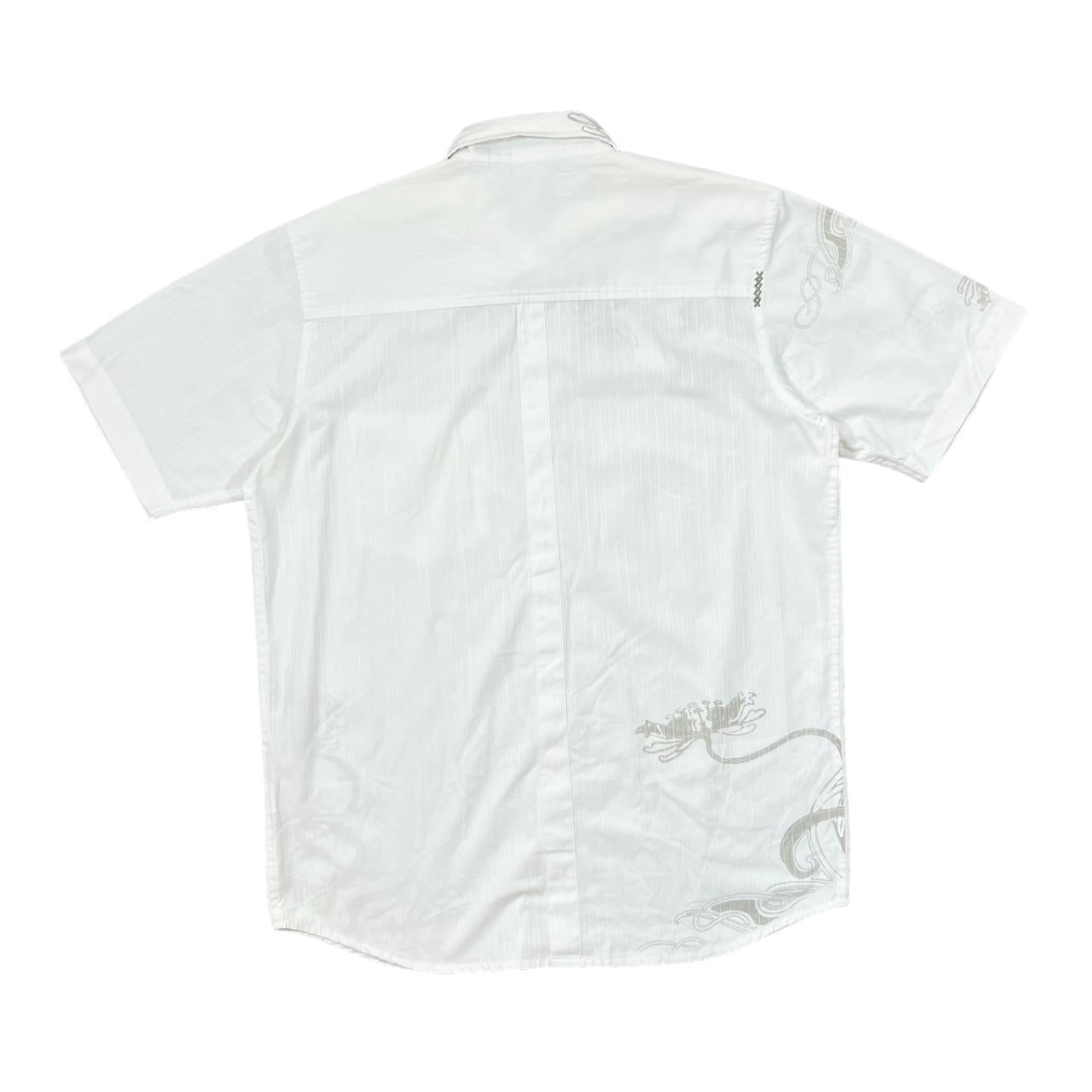 Early 00's QUIKSILVER Floral Surfer Graphic Short Sleeve Shirt