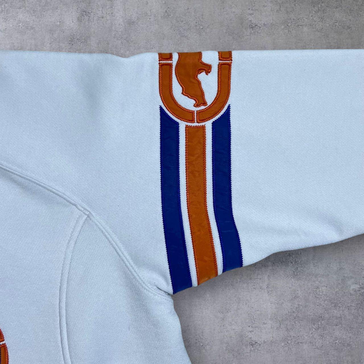 Detail: Embroidered logo spellout designs to front, back and sleeves. Has pockets. Made in Indonesia.