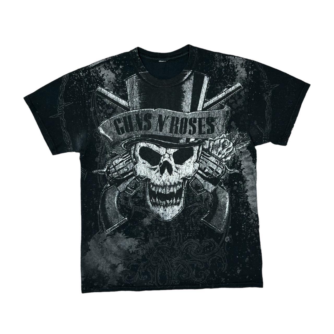 GUNS N ROSES Skull Logo Spellout All-Over Print Graphic Heavy Metal Hard Rock Band T-Shirt