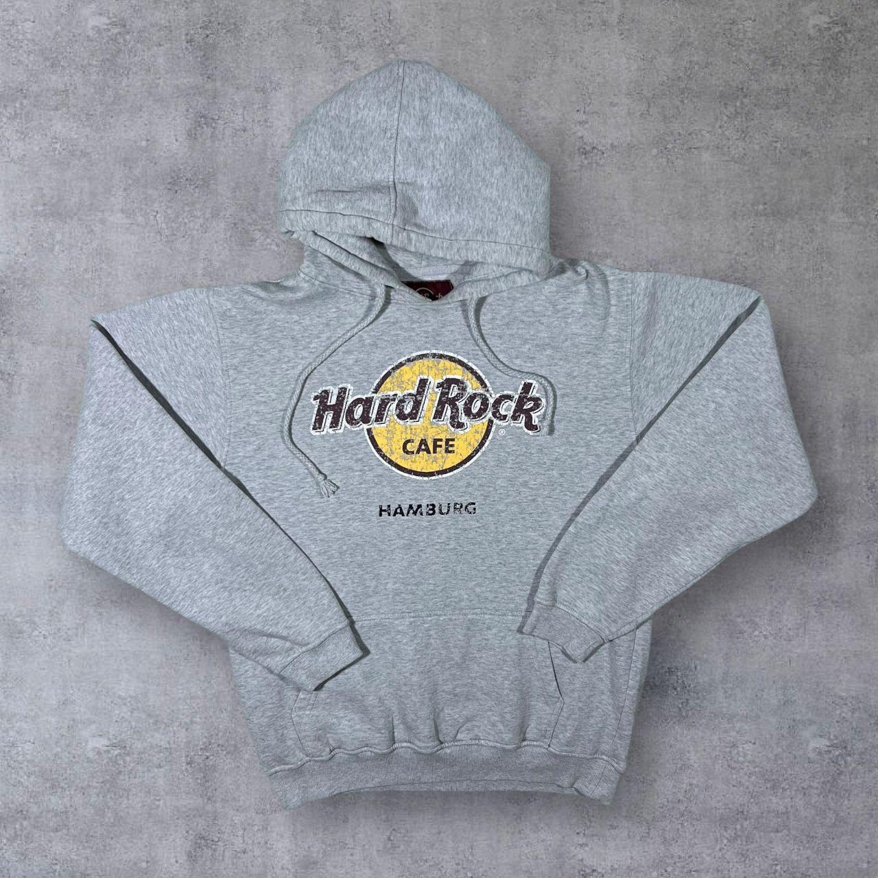 Hard Rock Cafe "Hamburg" Distressed Style Logo Souvenir Graphic Grey Hoodie