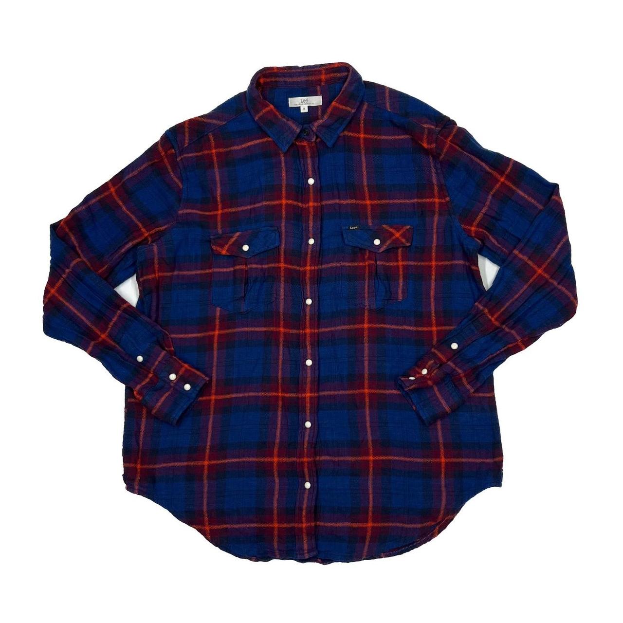 LEE Western Plaid Check Pearl Snap Popper Button Long Sleeve Flannel Cotton Shirt