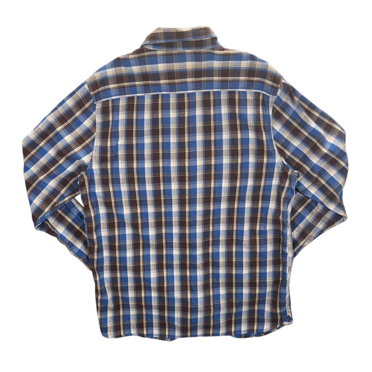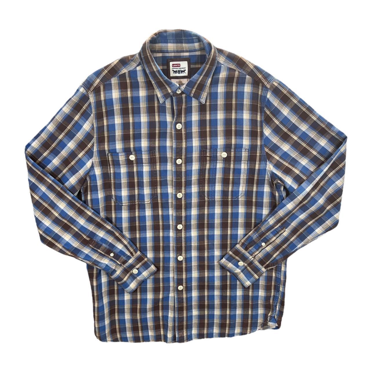 Levi's "Original Workshirt" Brown Blue Plaid Check Long Sleeve Flannel Cotton ShirtSize: Medium (See measurements)Colour: Brown/Blue/Beige/White CheckDetail: 100% cotton material.Condition: Light general wear as expected. Measurements: Pit to Pit: 21"Length: 30.5"Shoulder to Cuff: 27"#12974