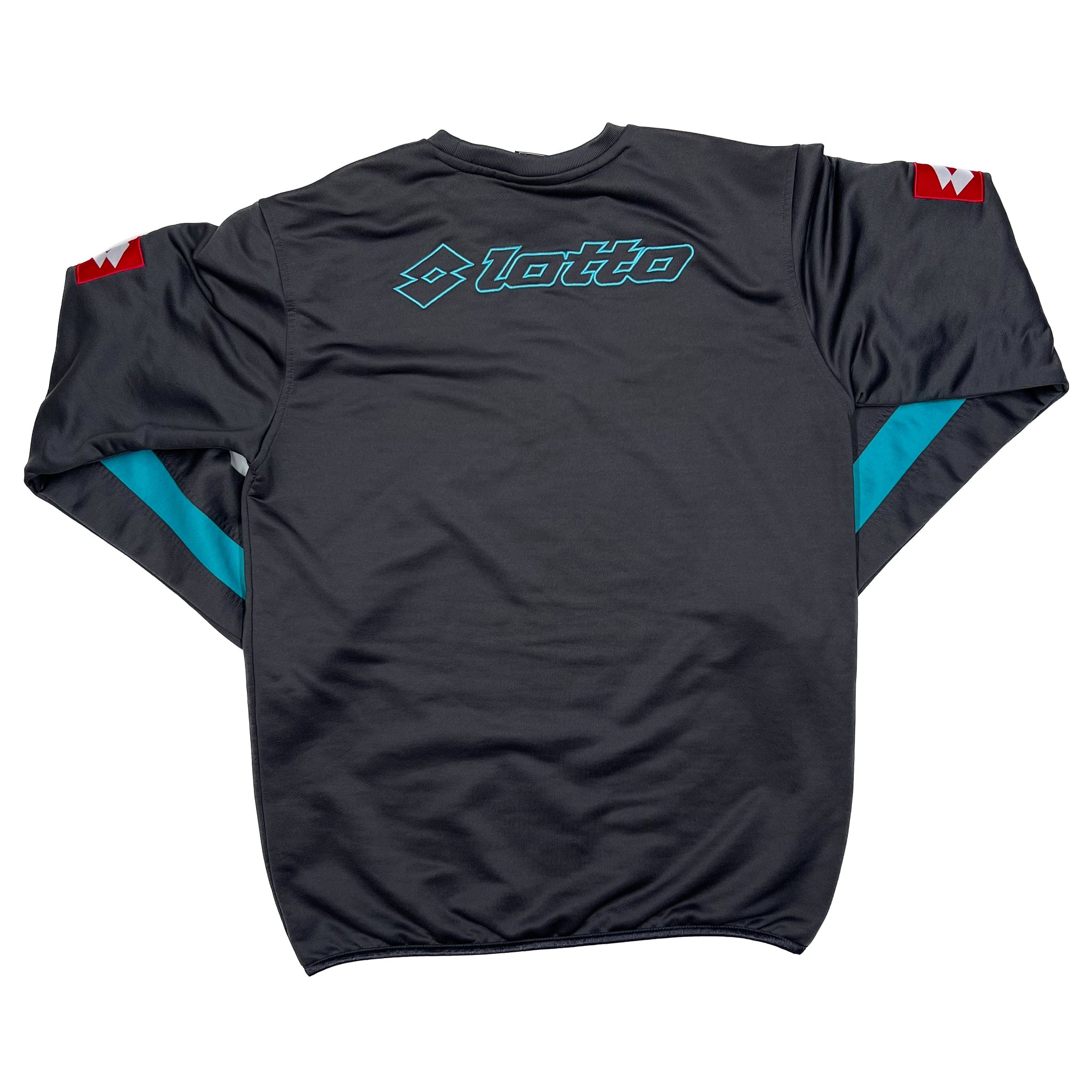 Detail: Team crest to chest with embroidered spellout to shoulder and back