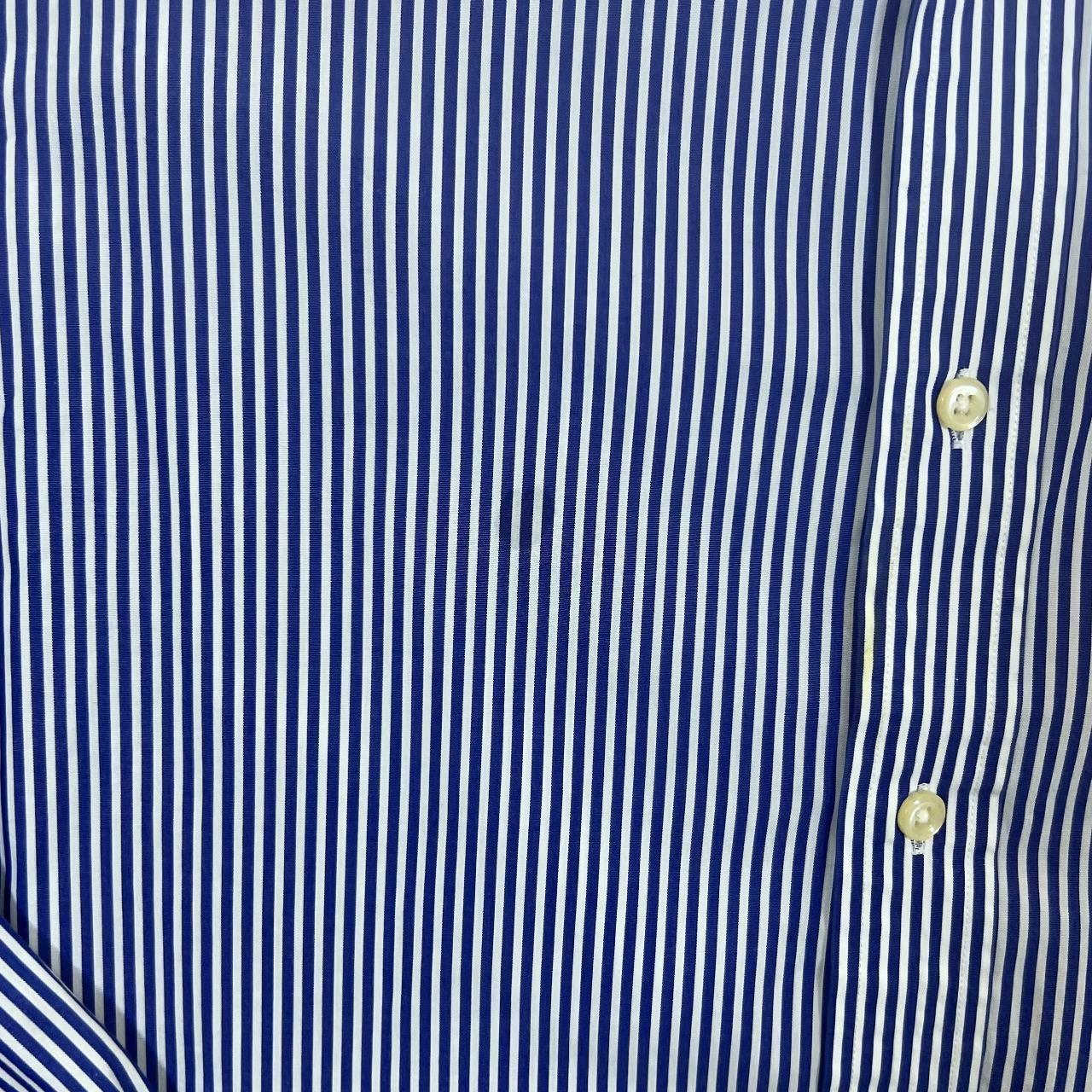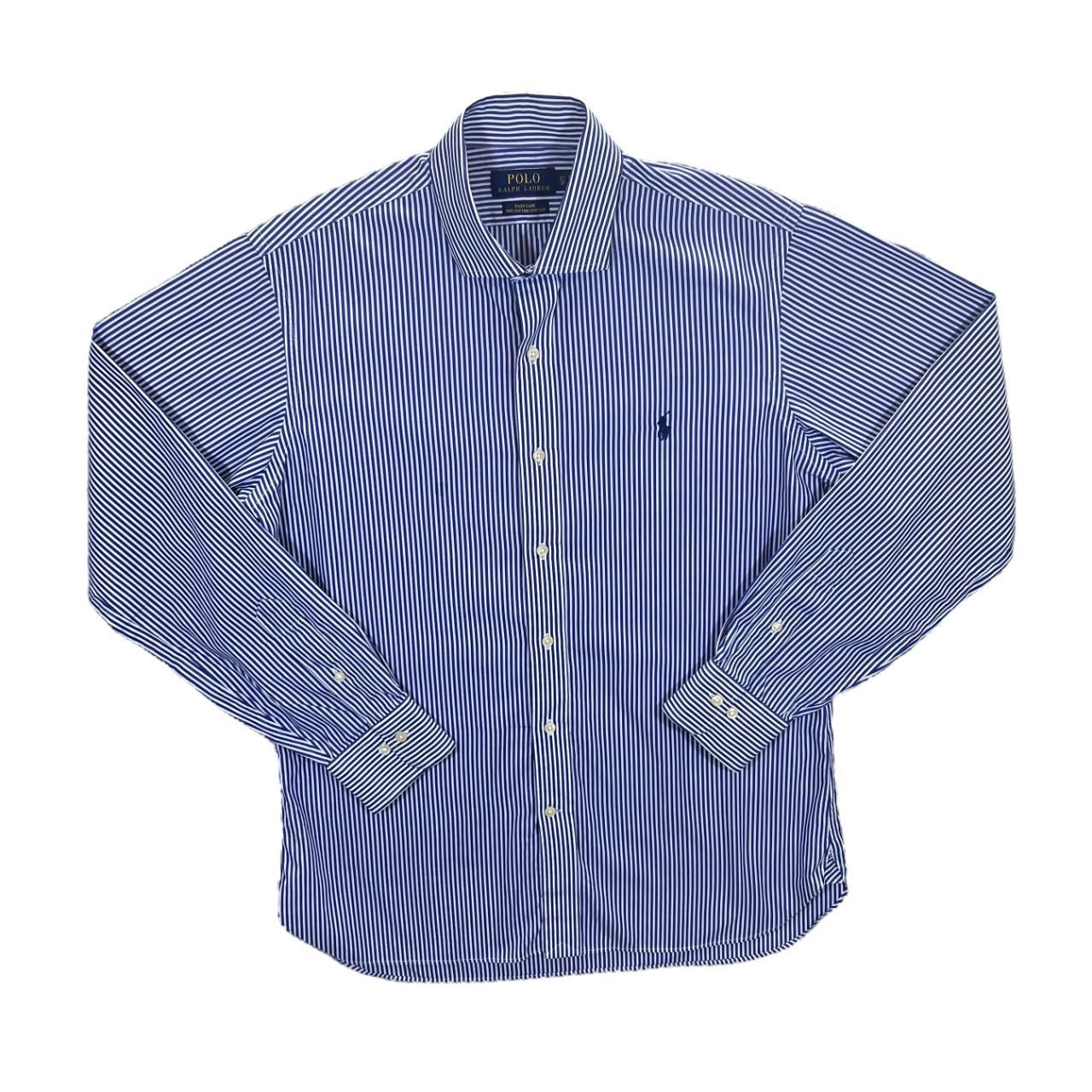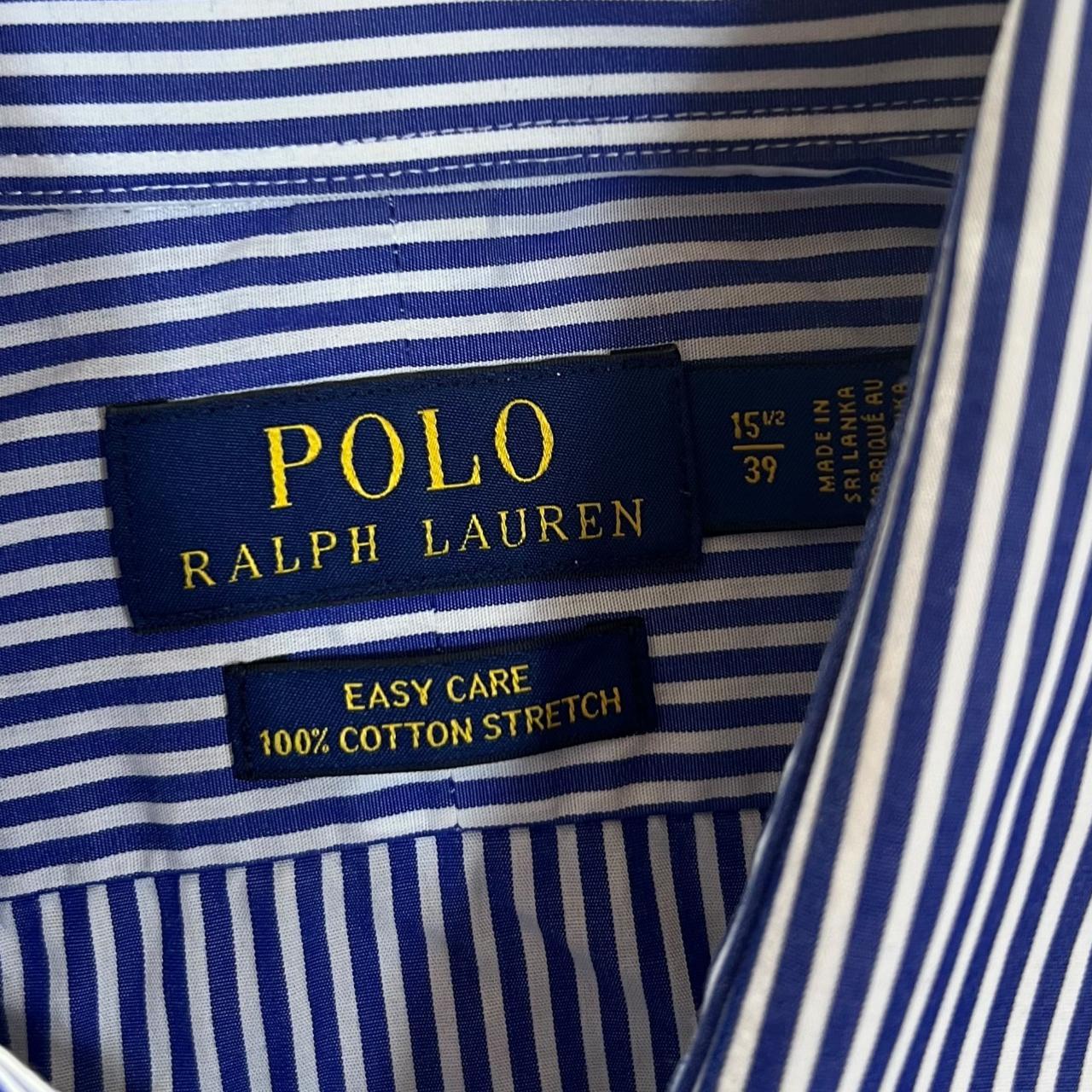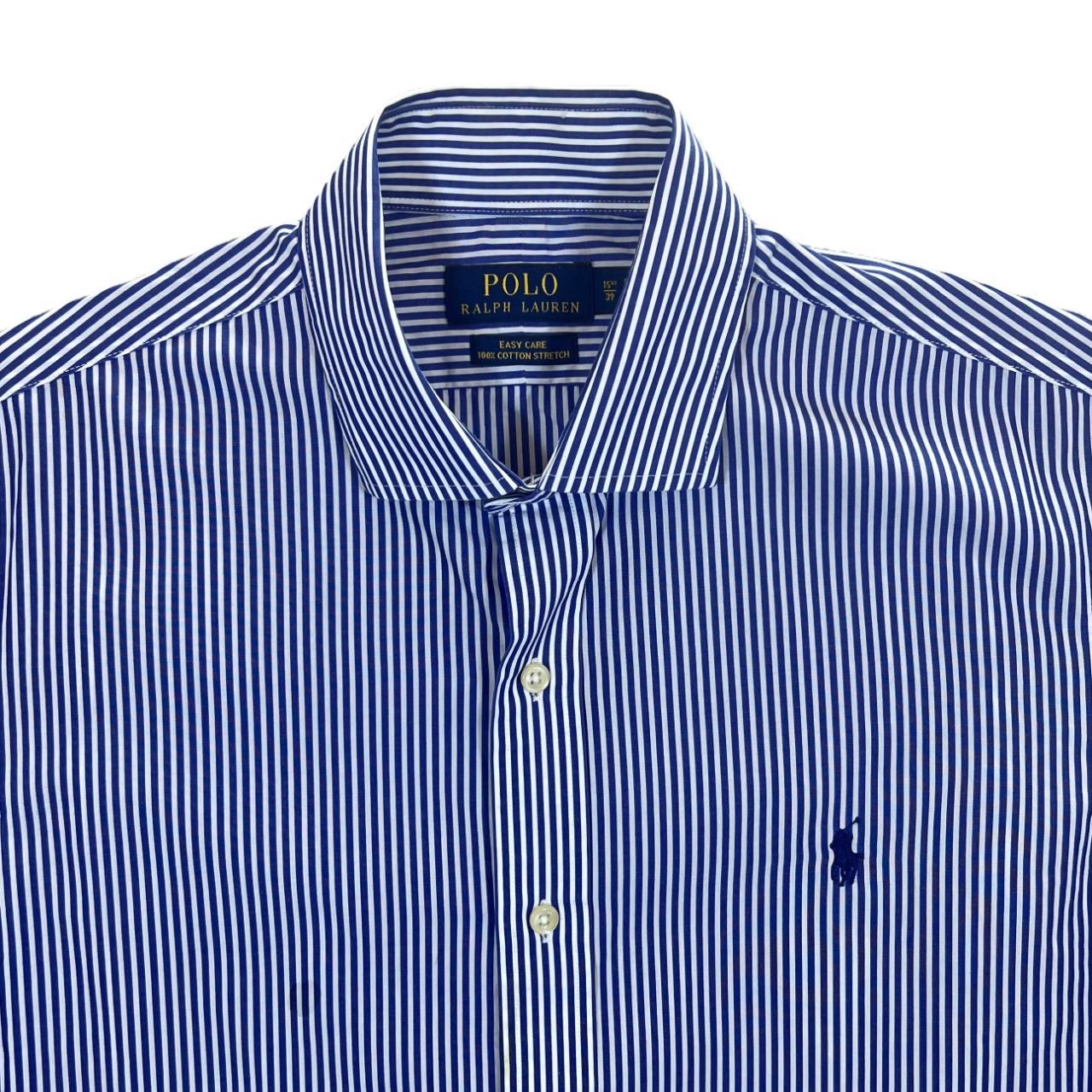 Polo Ralph Lauren Blue White Striped Long Sleeve Cotton Dress ShirtSize: 15.5/39 fits like a Medium (See measurements)Colour: Blue/White StripedDetail: 100% cotton stretch material.Condition: Very faint flaw to chest pictured. Measurements: Pit to Pit: 21"Length: 30"Shoulder to Cuff: 25"#12973