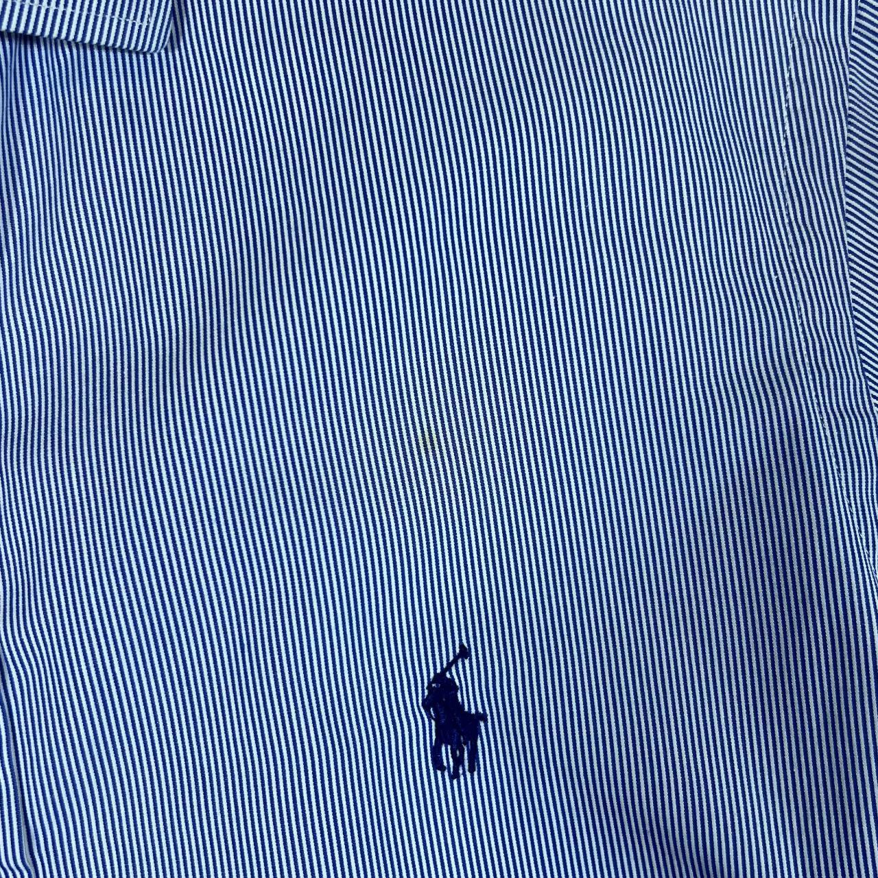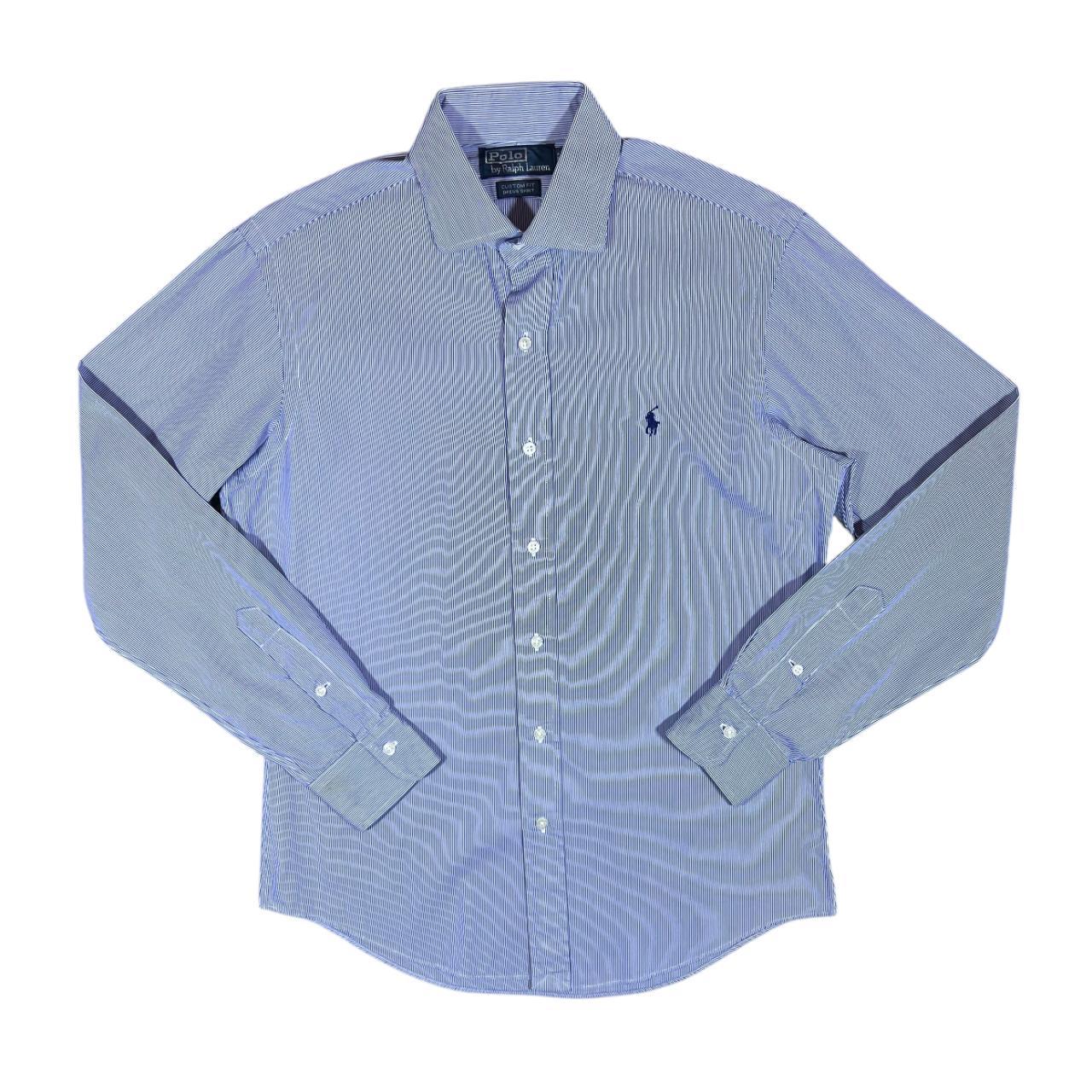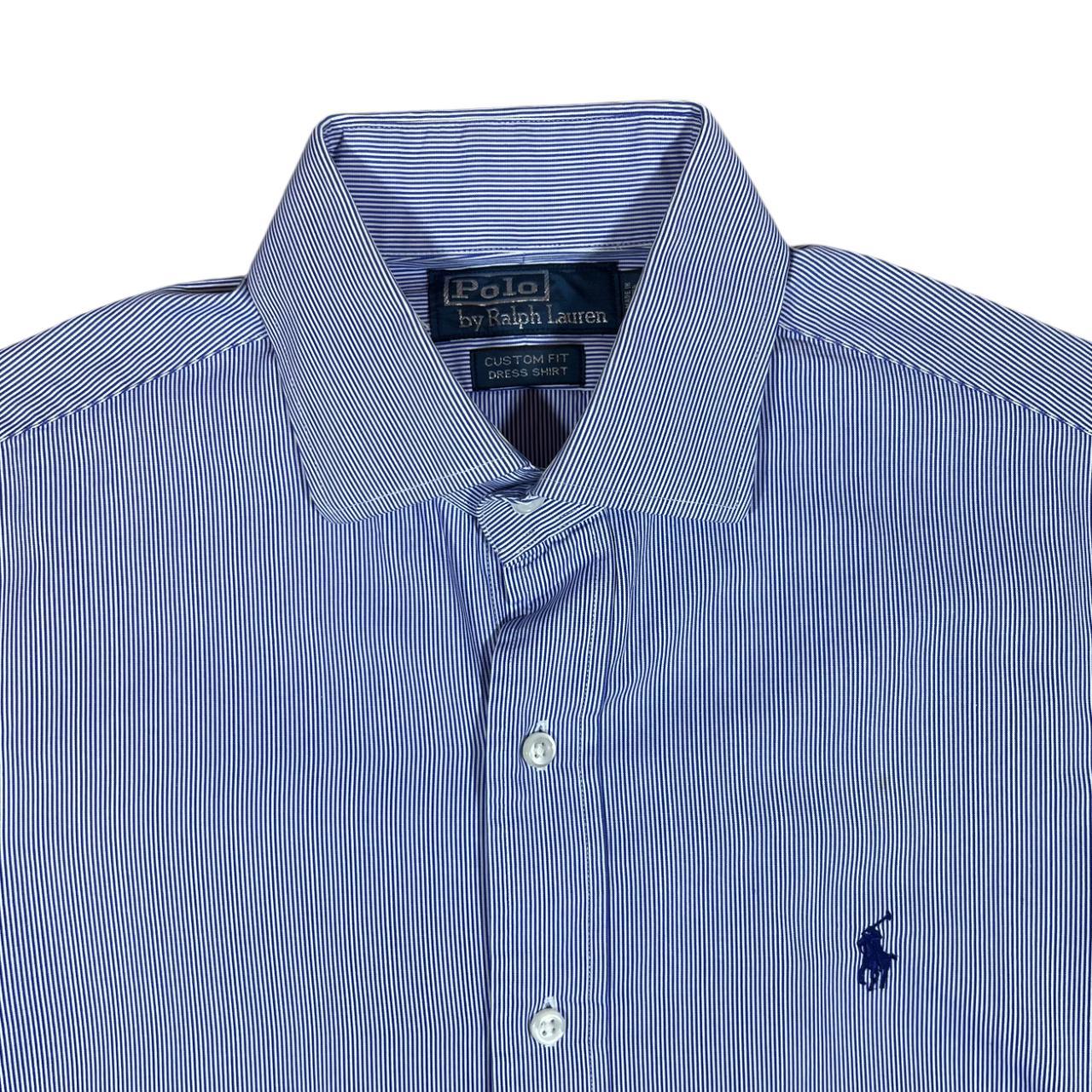 POLO RALPH LAUREN "Custom Fit Dress Shirt" Blue White Pinstriped Long Sleeve Shirt