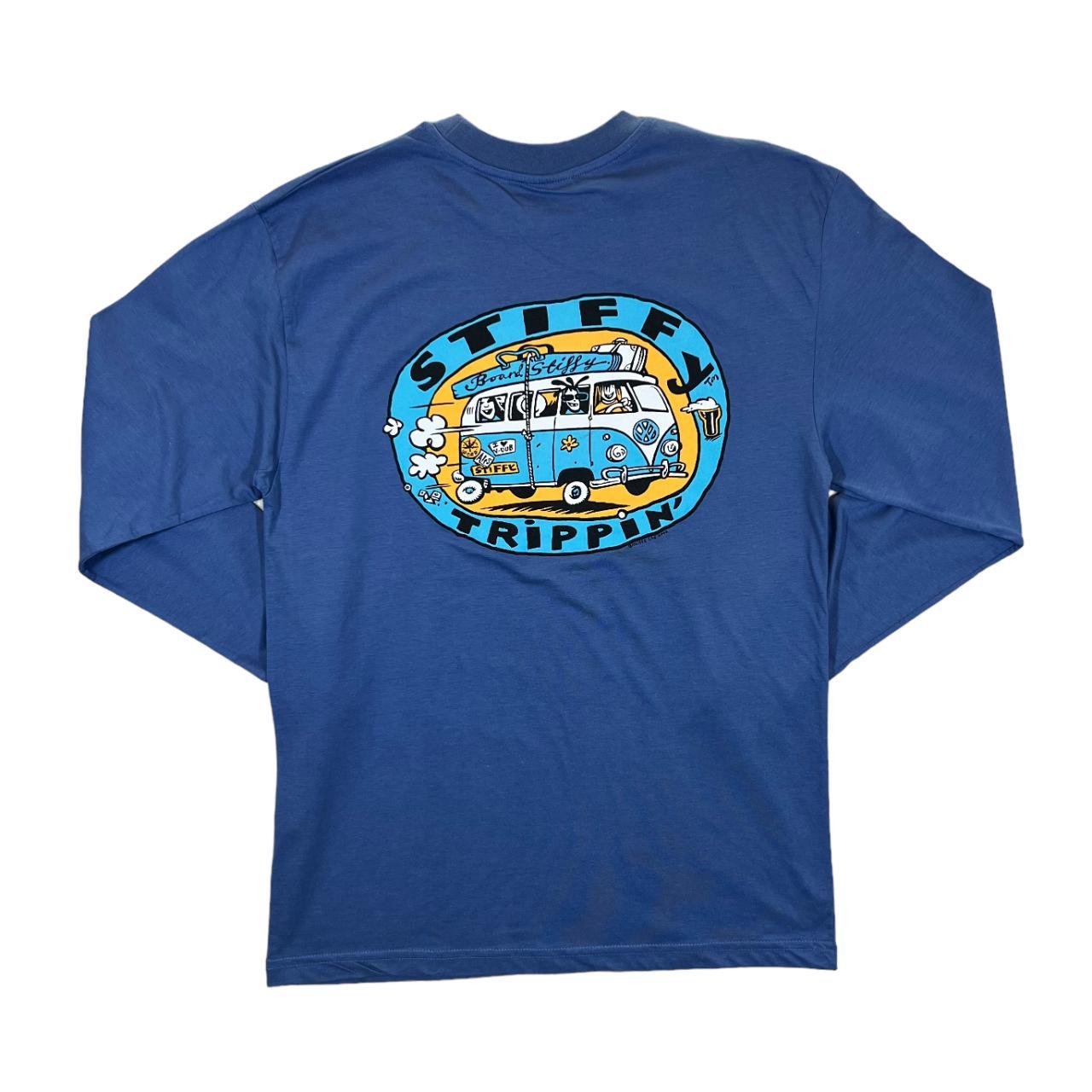 STIFFY "Stiffy Trippin" Surfer Skater Logo Spellout Graphic Blue Long Sleeve T-Shirt