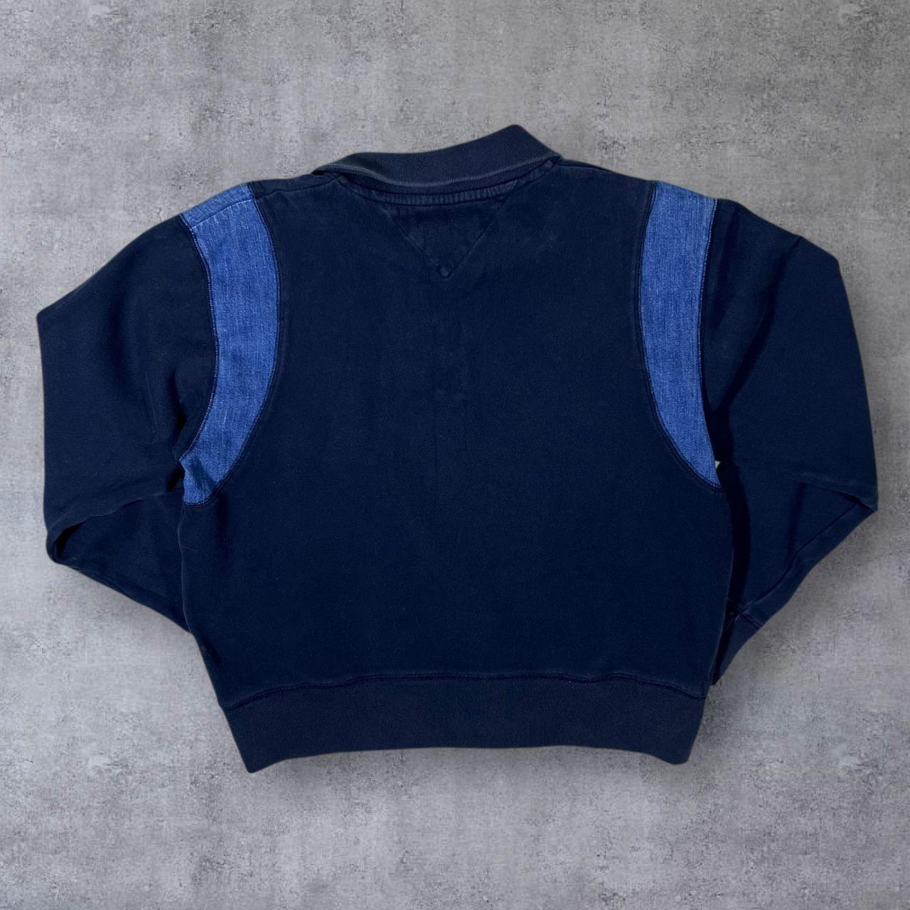 Tommy Hilfiger Denim Embroidered Logo Navy Blue 1/4 Zip Pullover Sweatshirt
