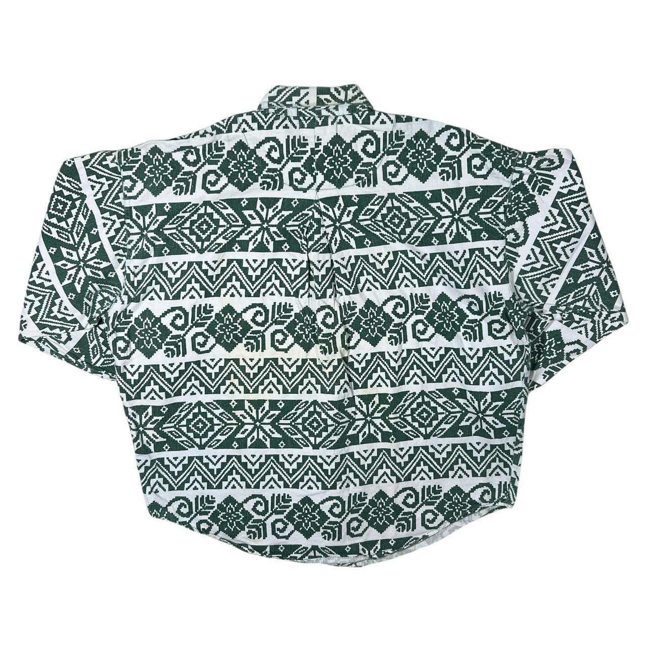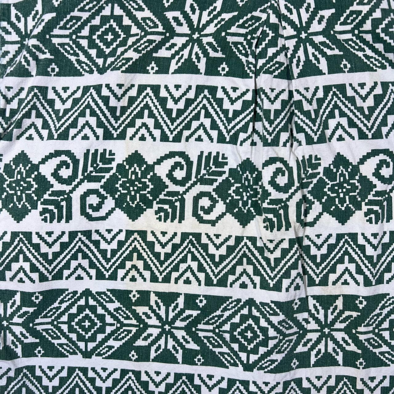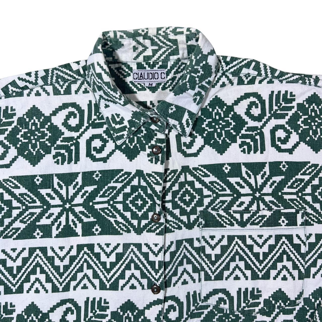 Vintage 90's Claudio C Crazy Abstract Patterned Green White Long Sleeve Cotton Shirt