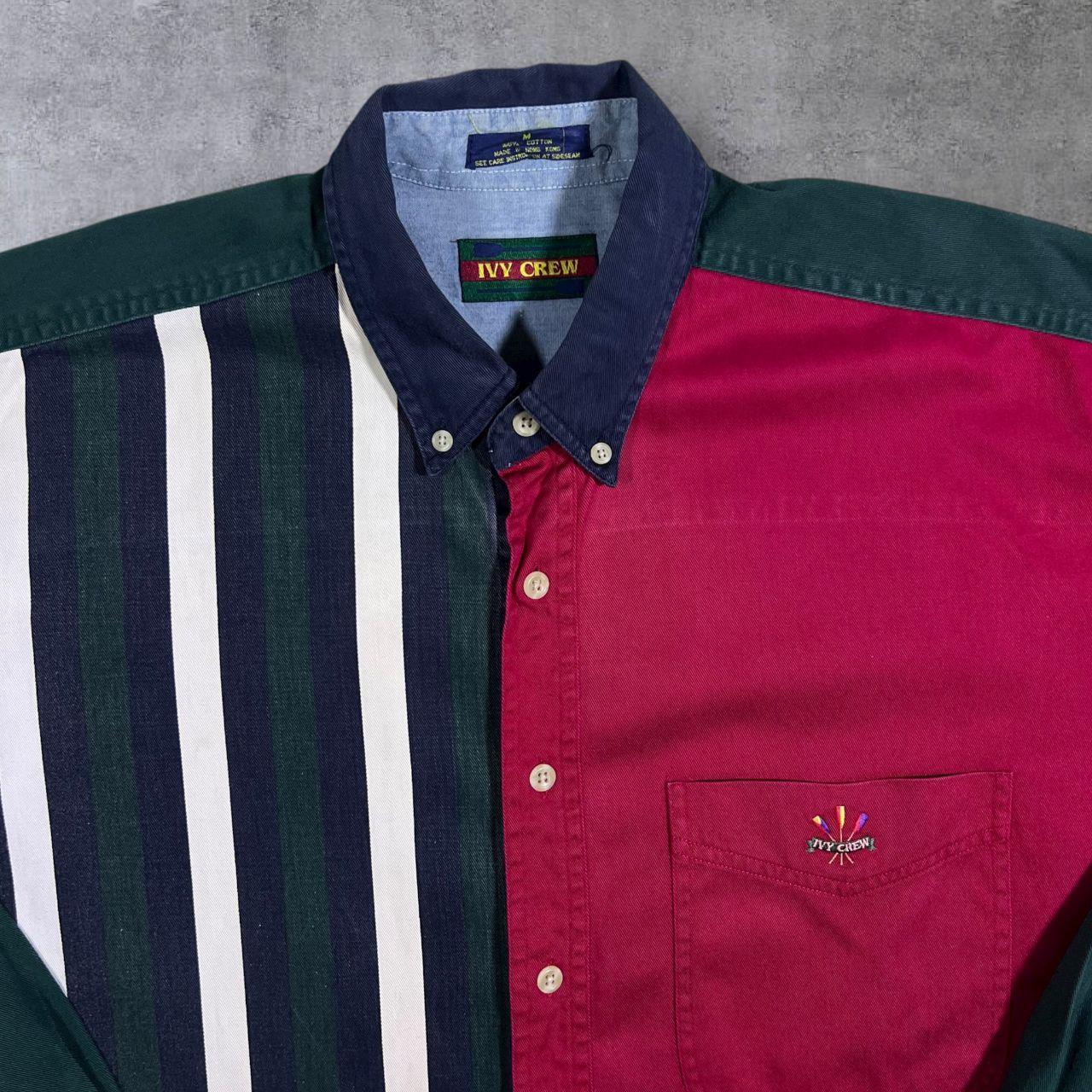 Vintage 90's Ivy Crew Multi Colour Block Striped Long Sleeve Button-Up Shirt