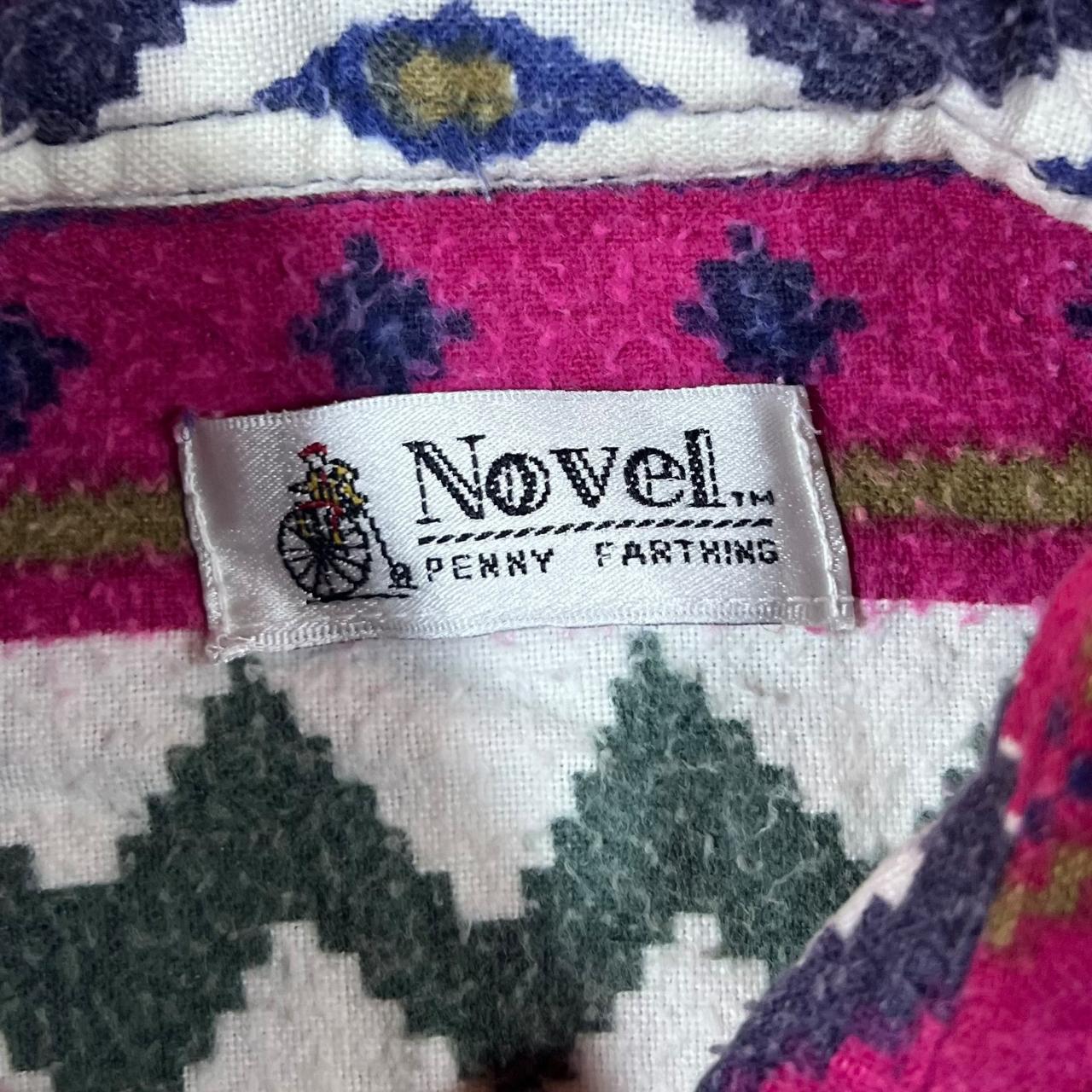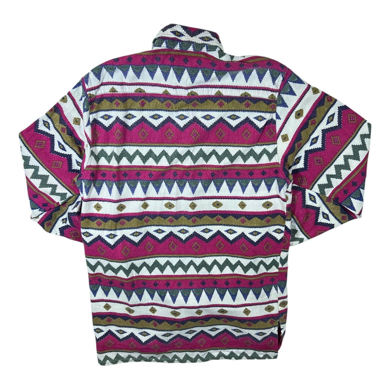 Vintage 90's Novel Penny Farthing Abstract Aztec Patterned Long Sleeve Flannel Shirt