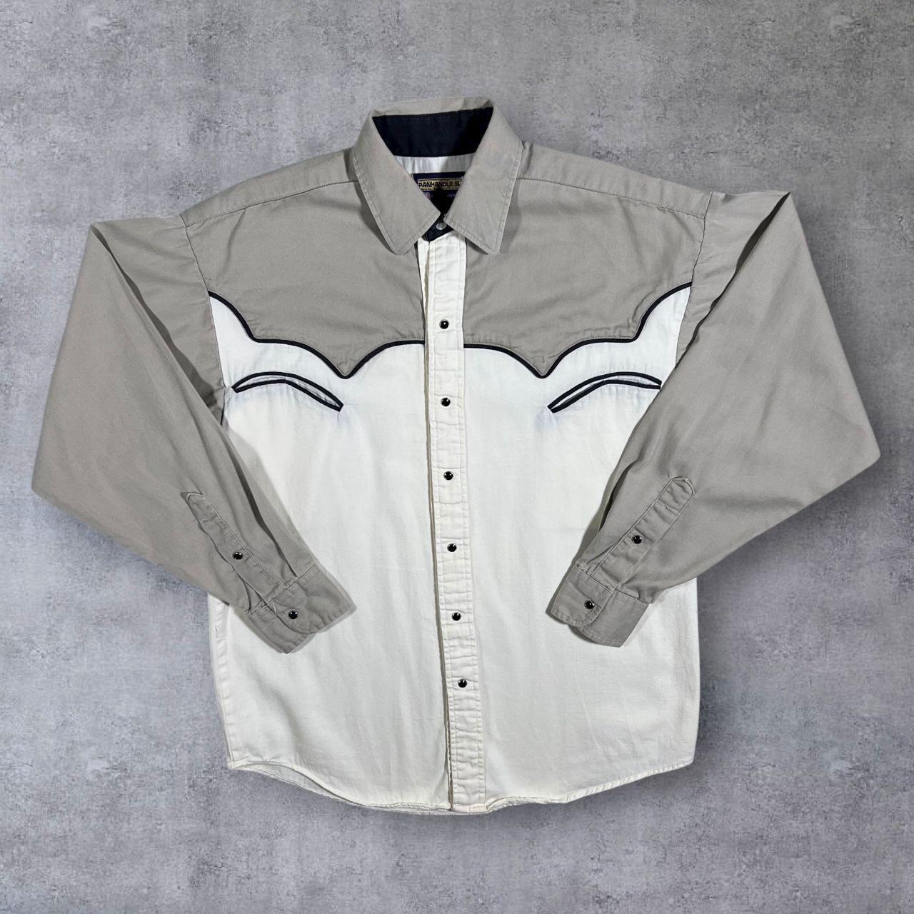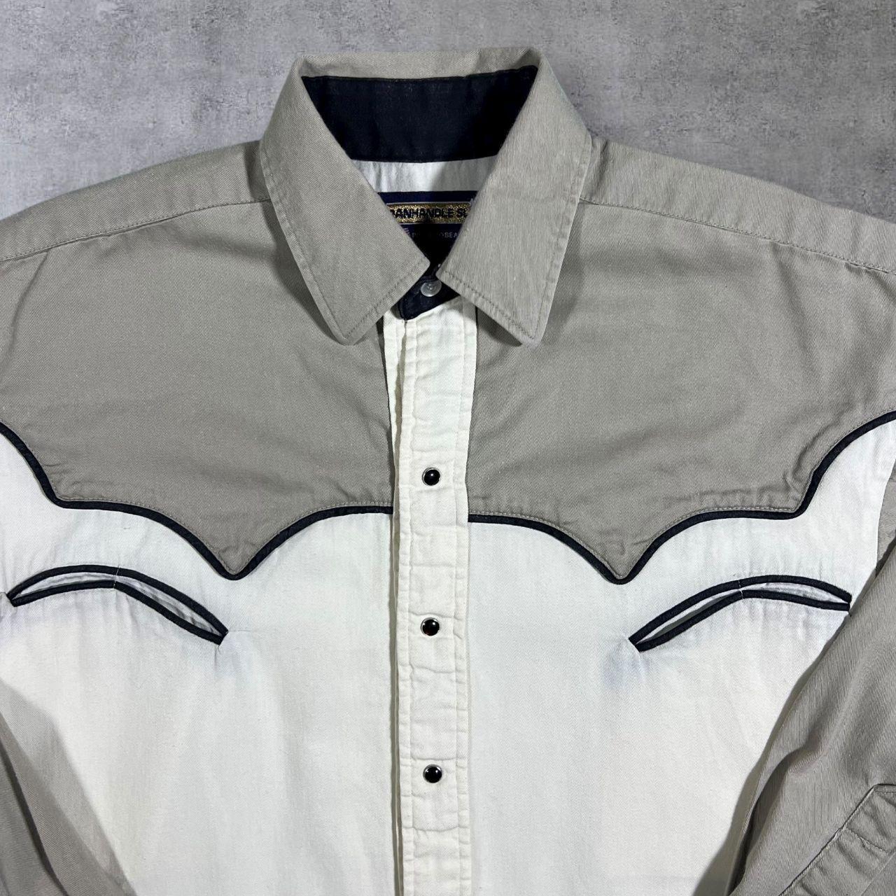Vintage 90's Panhandle Slim Cowboy Western Beige Cream Popper Long Sleeve Shirt