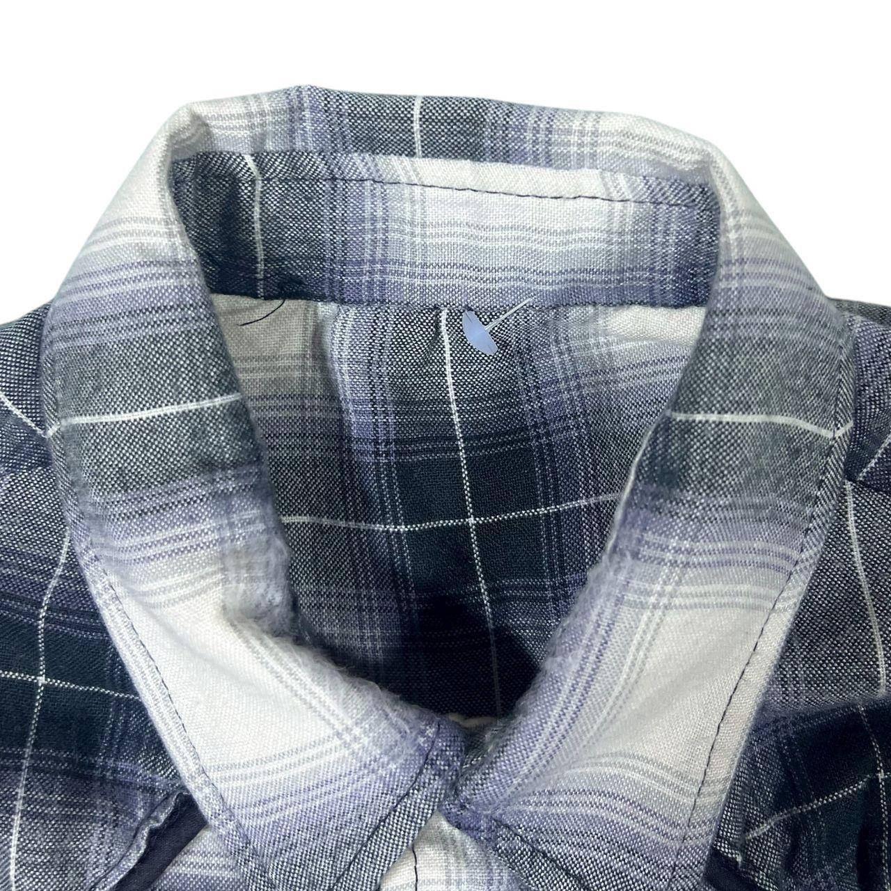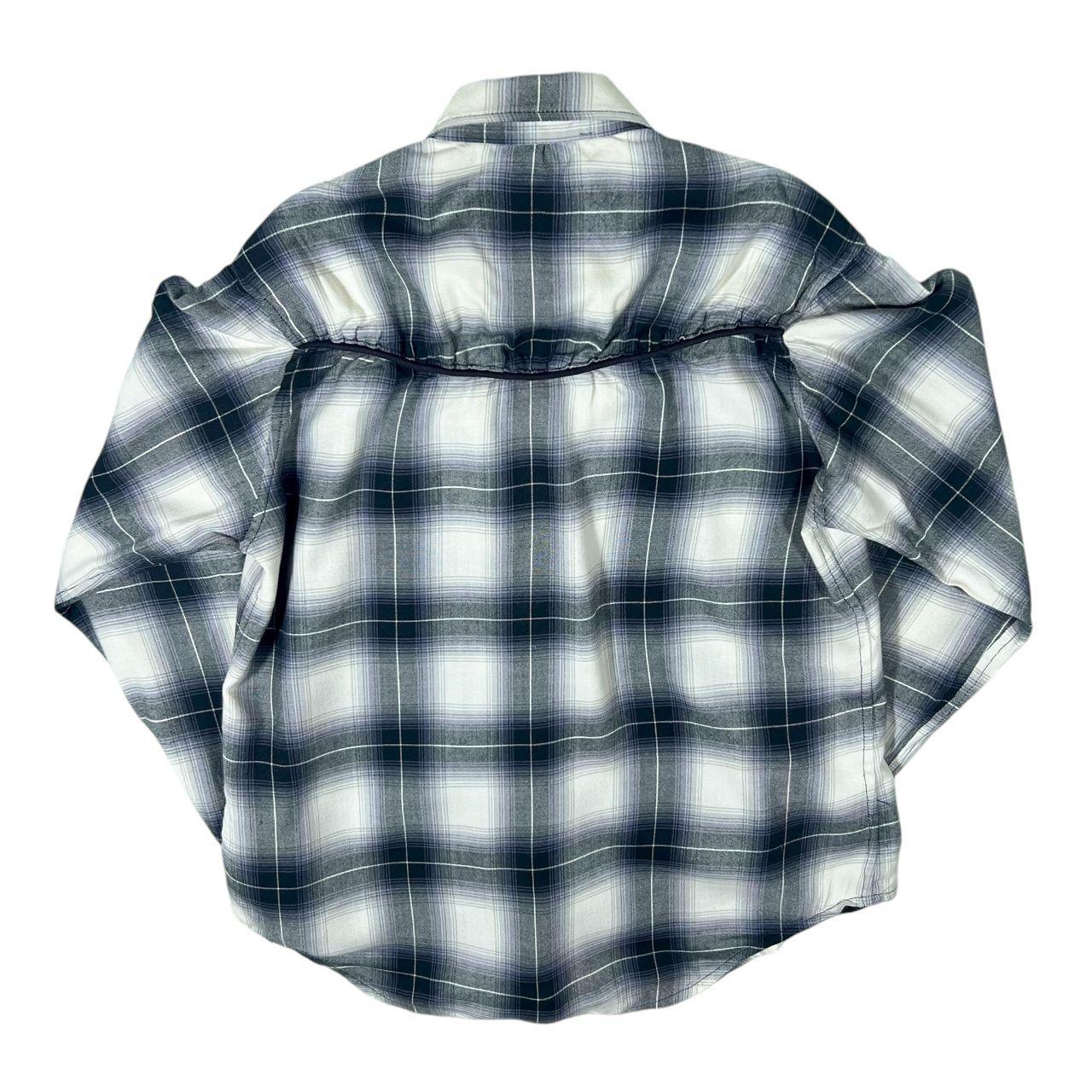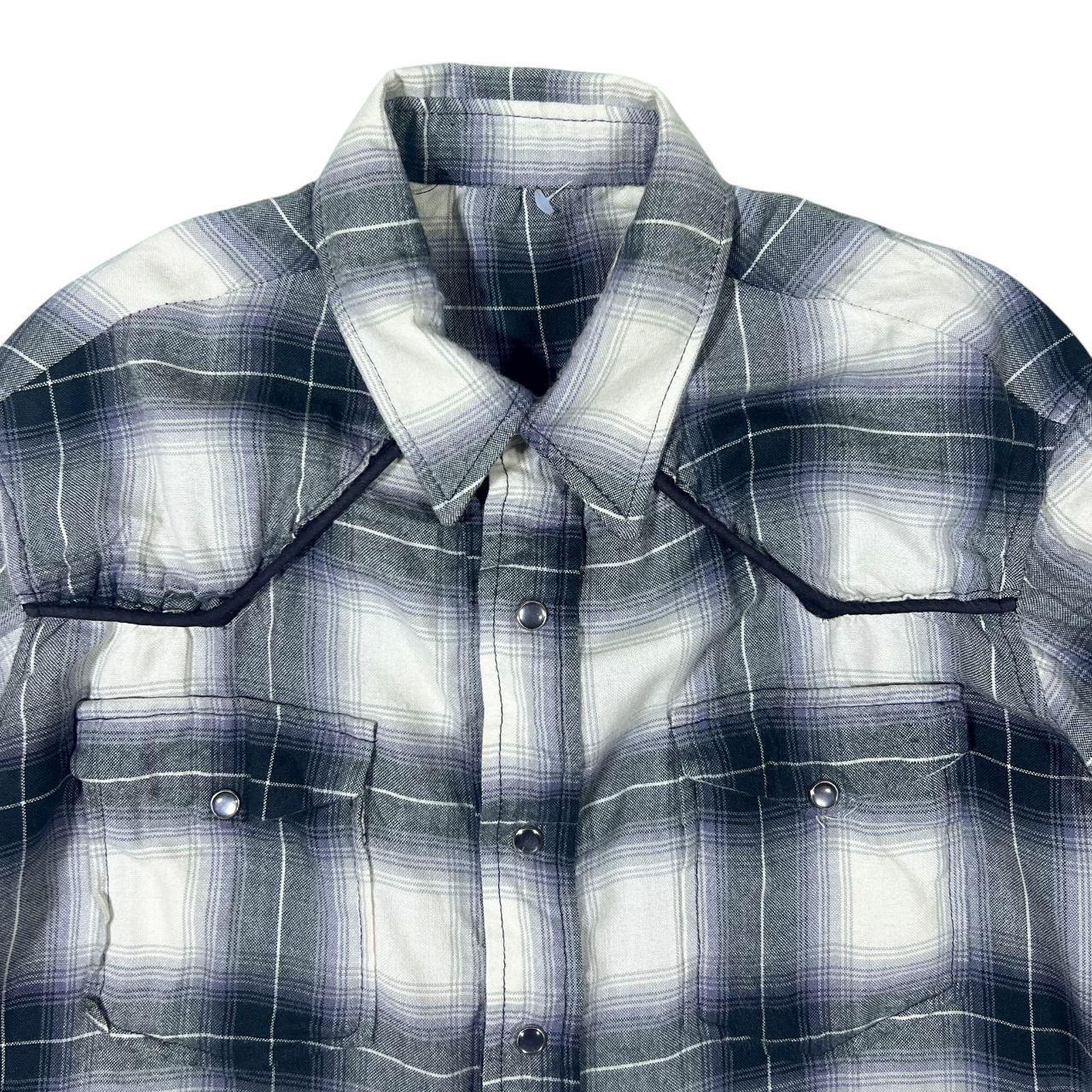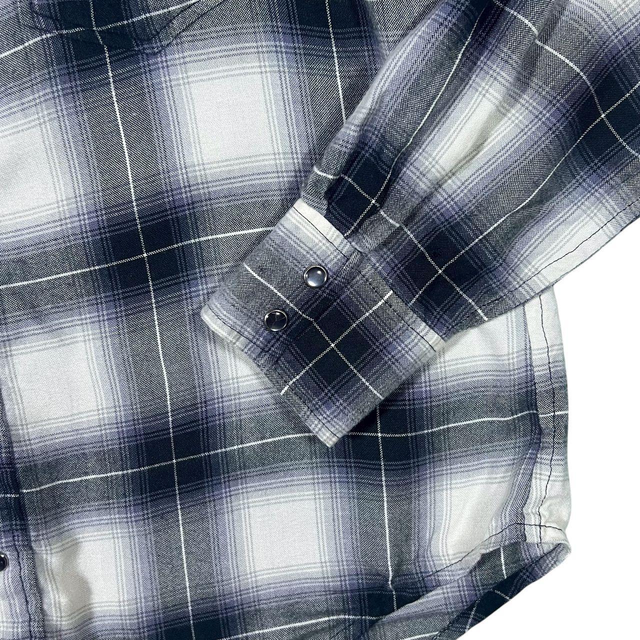Vintage Cowboy Western Black White Grey Plaid Check Popper Cotton Long Sleeve Shirt