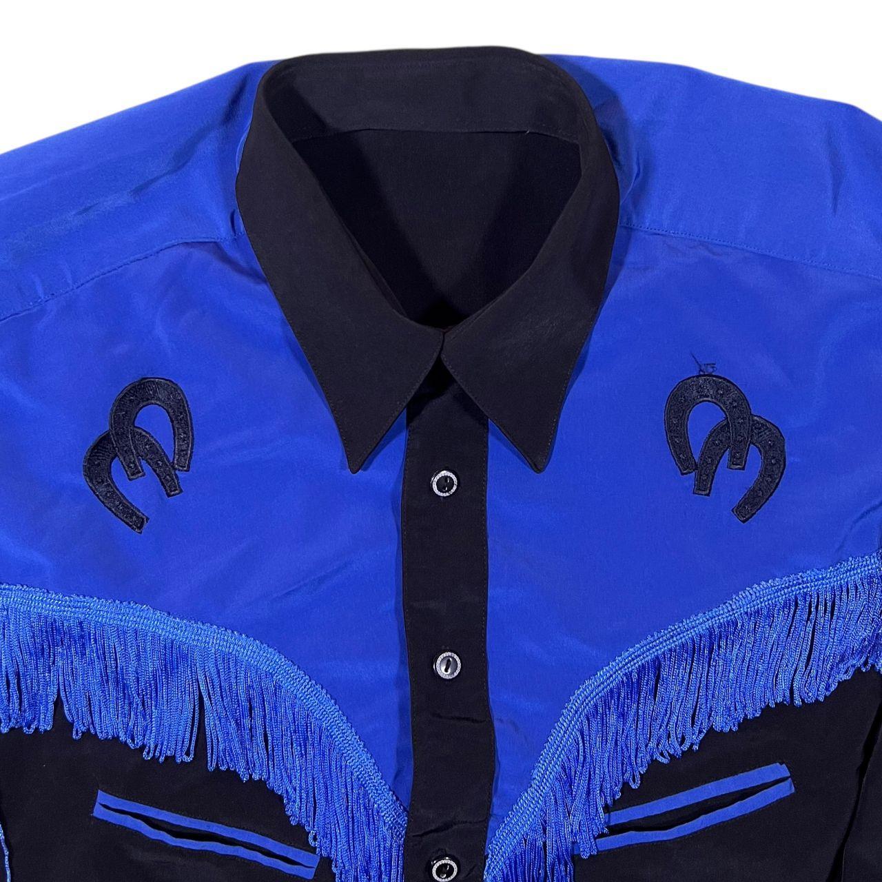 Vintage Dr. Roberto Black Blue Cowboy Western Tasselled Long Sleeve Shirt