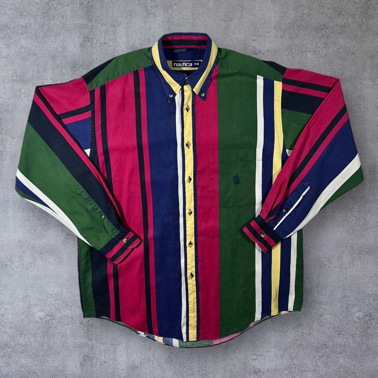 Vintage Nautica Multi Colour Striped Long Sleeve Button-Down Cotton Shirt
