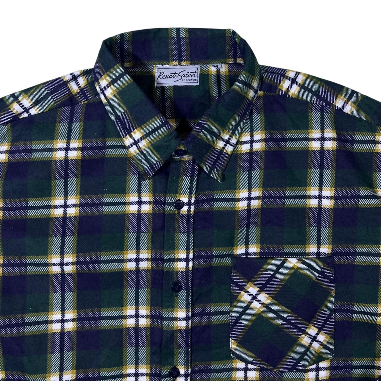 Vintage Renate Solvet Navy Green Plaid Check Long Sleeve Cotton Flannel ShirtSize: Medium would fit Large (See measurements)Colour: Navy/Green/Yellow/White CheckDetail: 100% cotton material.Condition: Light general wear as expectedMeasurements: Pit to Pit: 24”Length: 29"Shoulder to Cuff: 25"#FL28