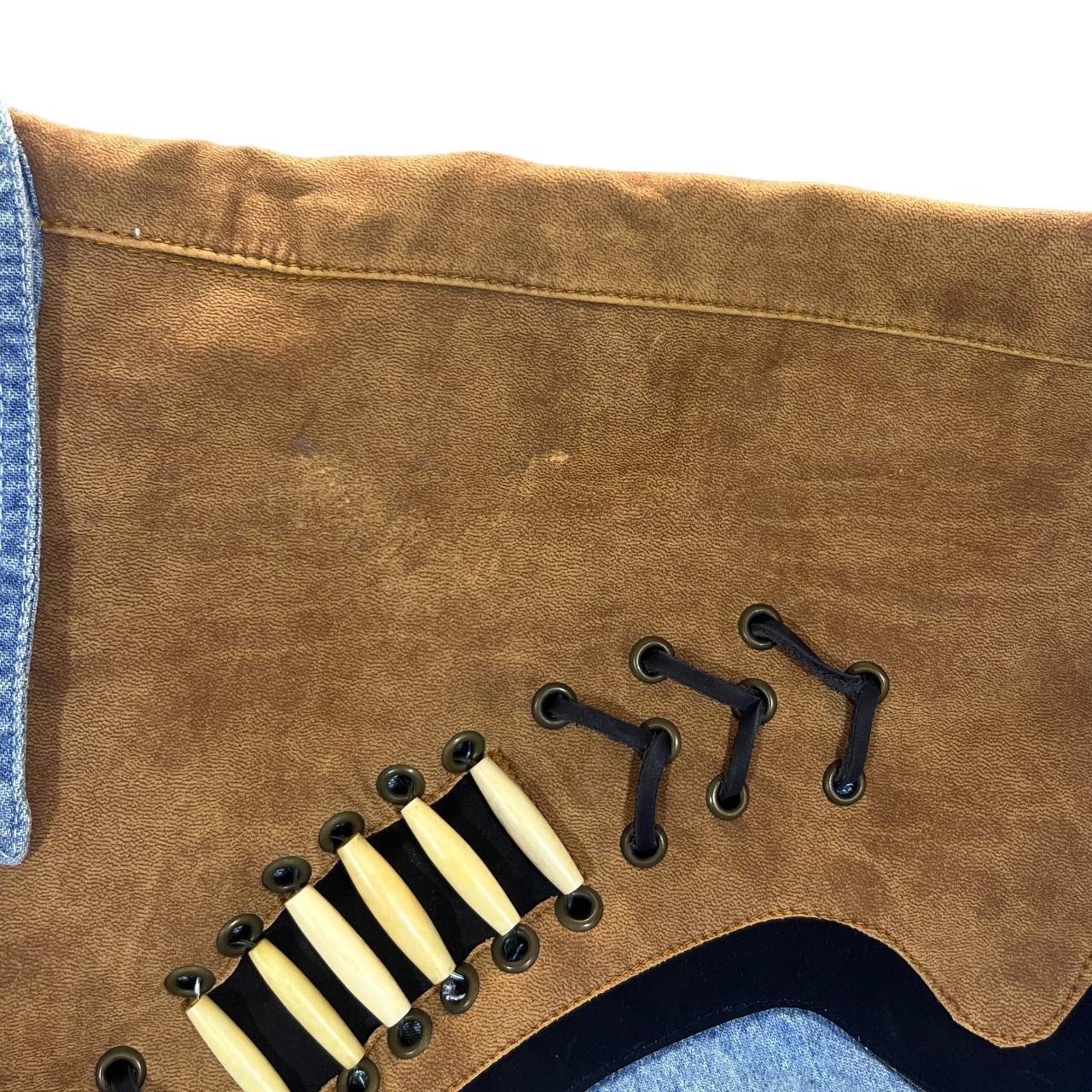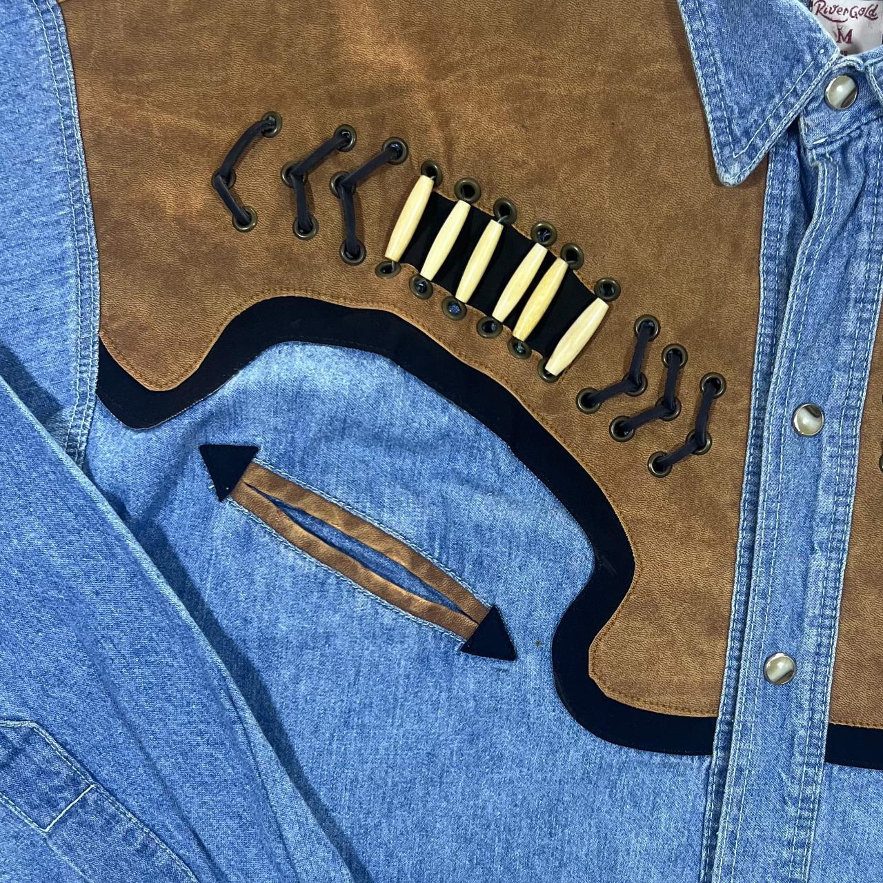 Vintage RIVERGOLD Leather Effect Panel Cowboy Western Long Sleeve Blue Denim Shirt