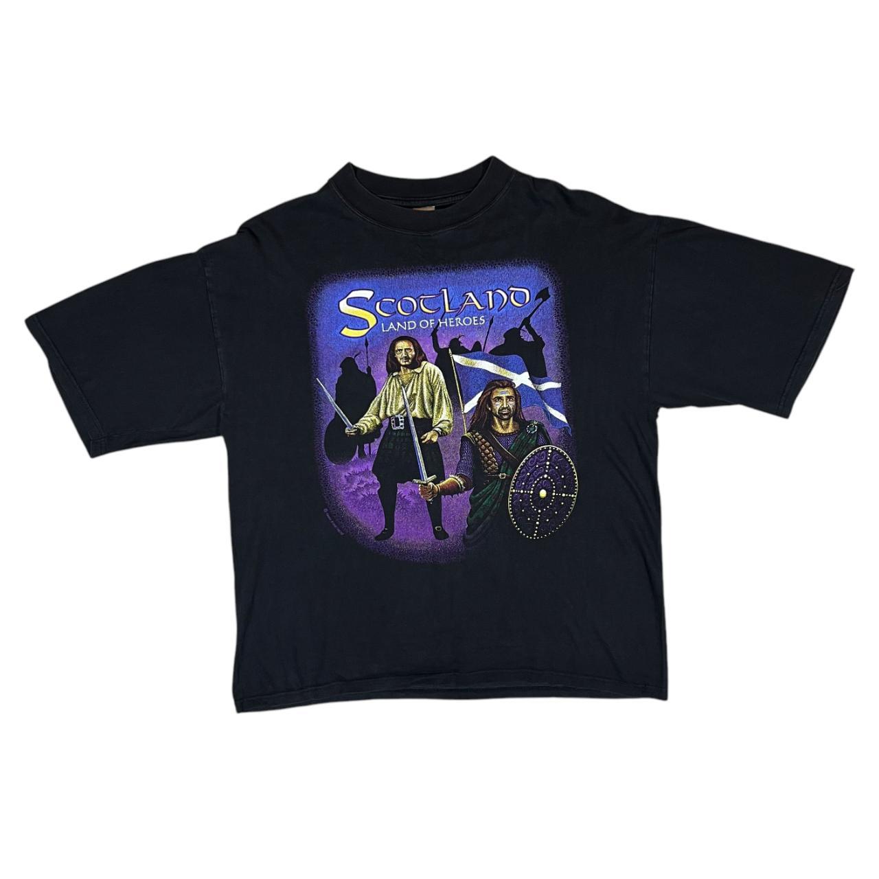 Vintage SCOTLAND "Land Of Heroes" Souvenir Spellout Graphic Black T-Shirt