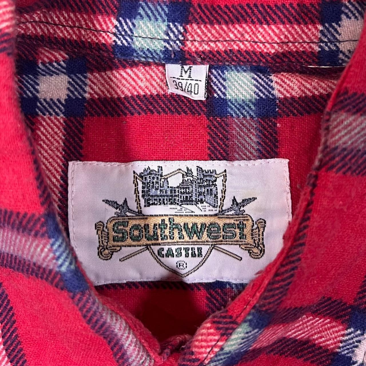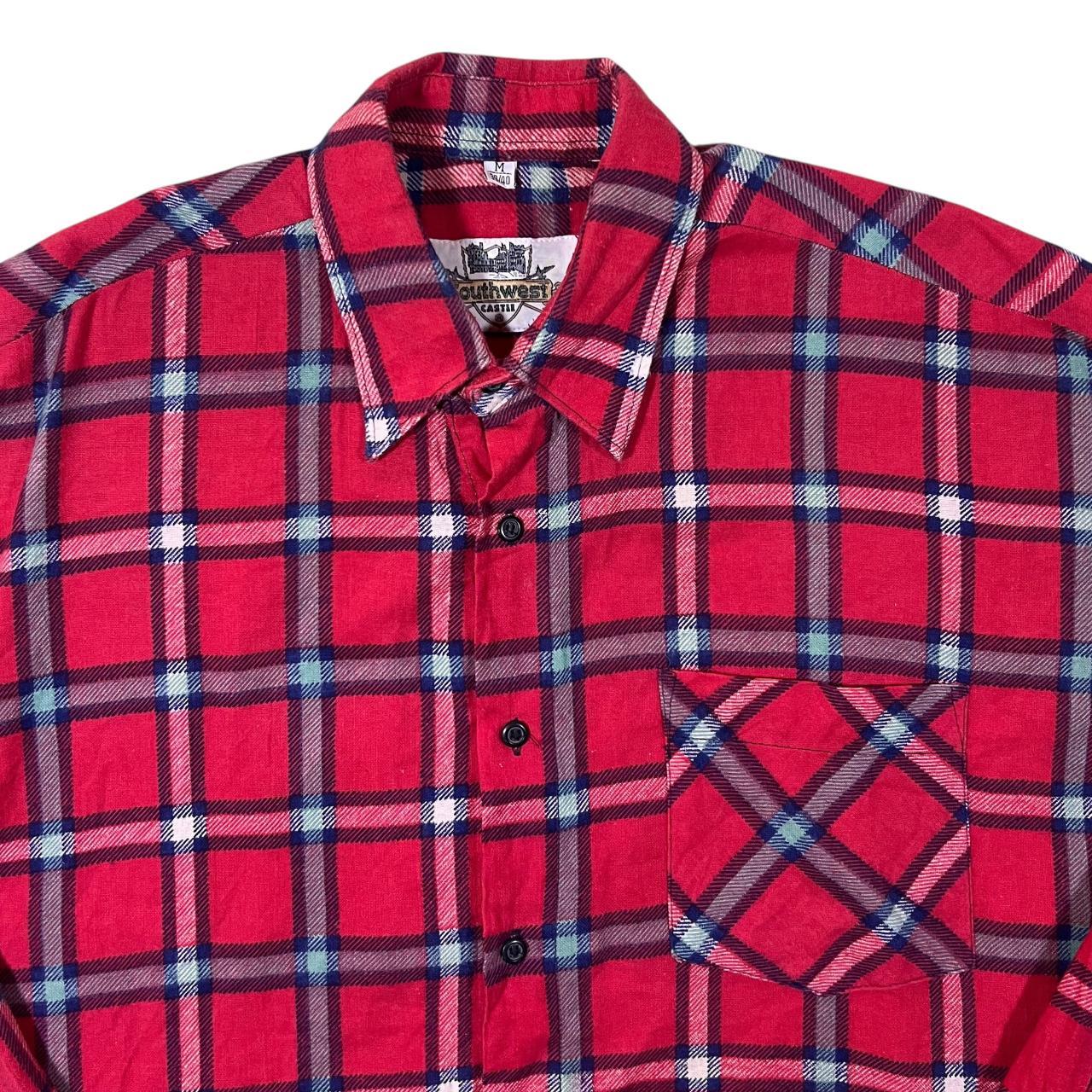Vintage Southwest Castle Red Multi Plaid Check Long Sleeve Flannel Shirt