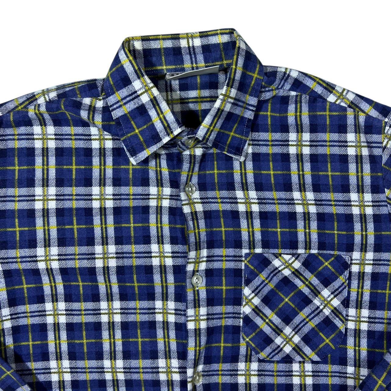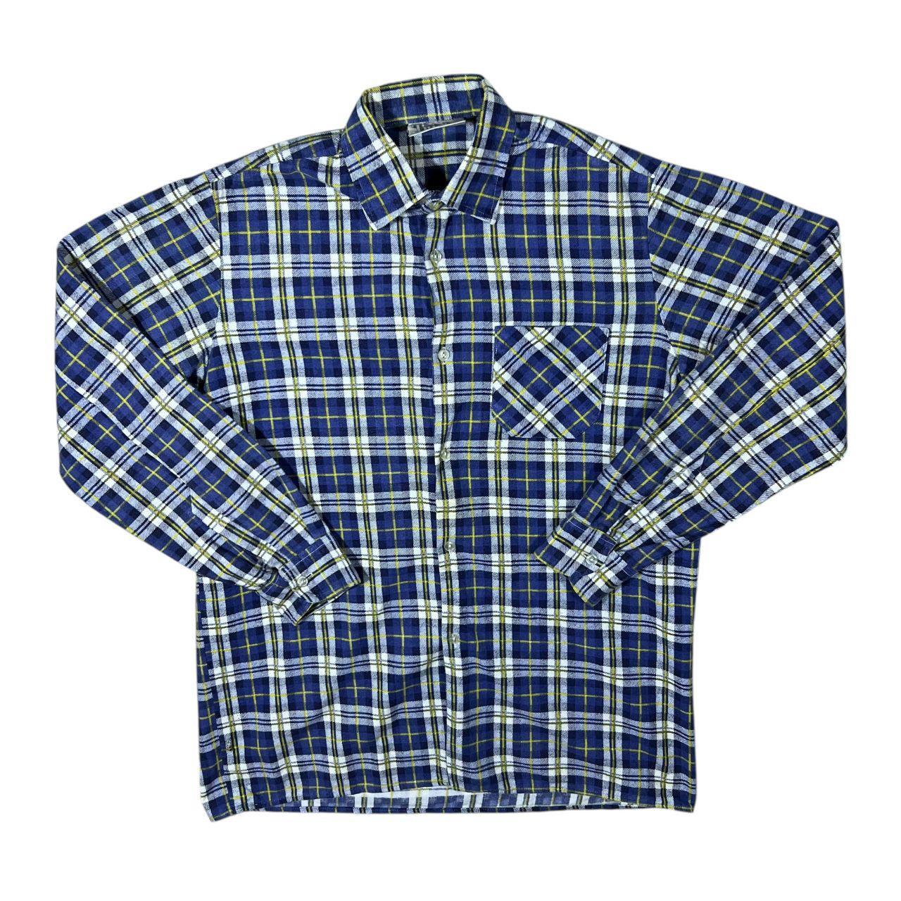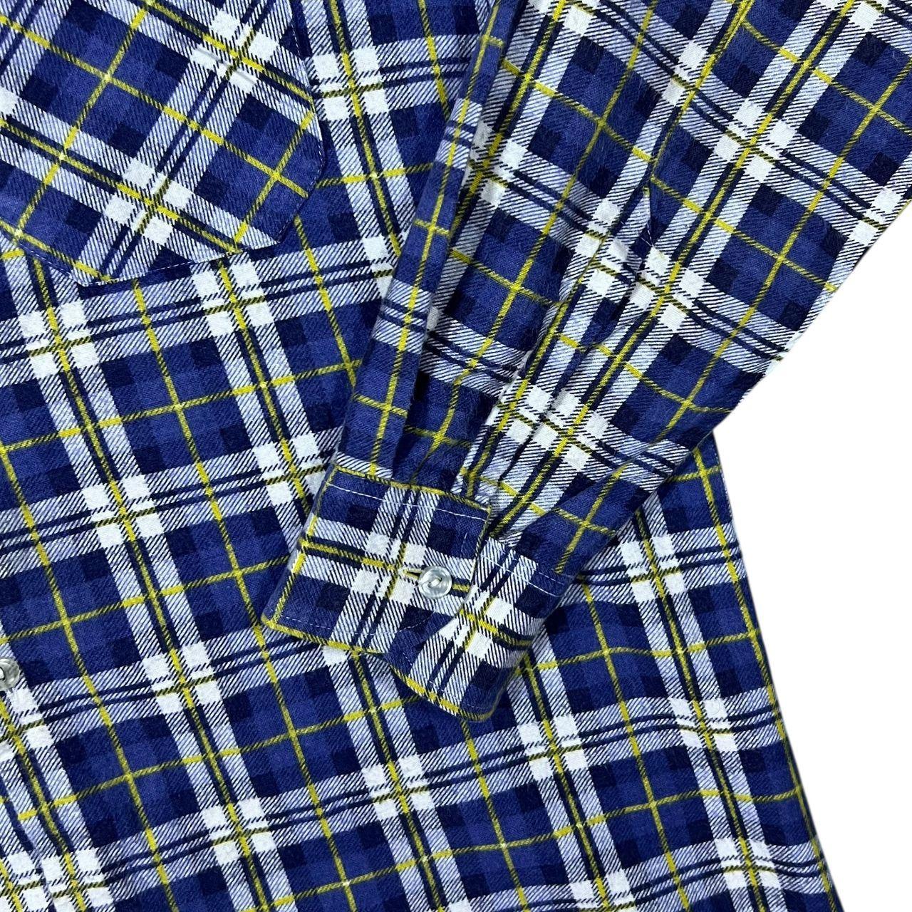 Vintage Triola Blue White Yellow Plaid Check Cotton Long Sleeve Flannel Shirt