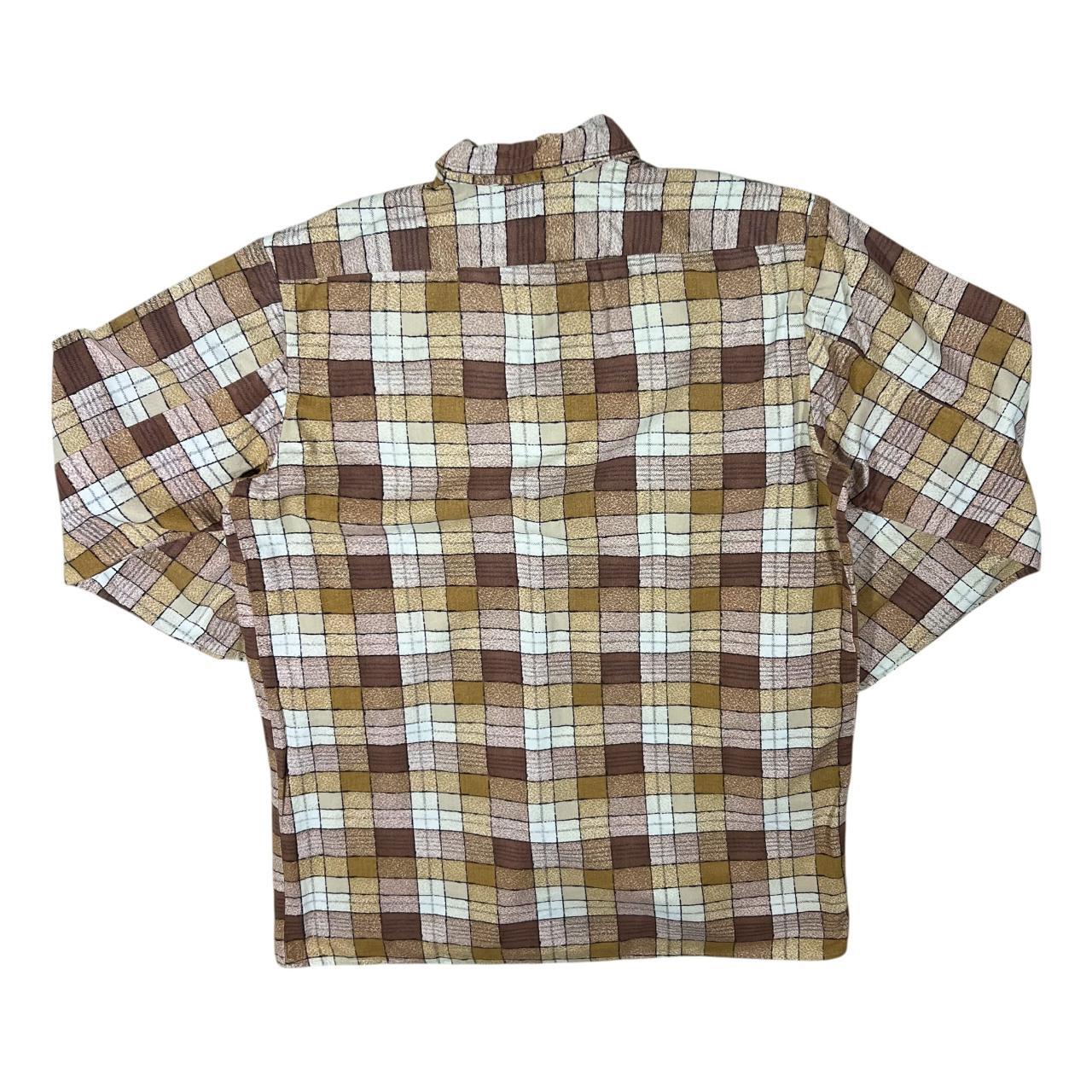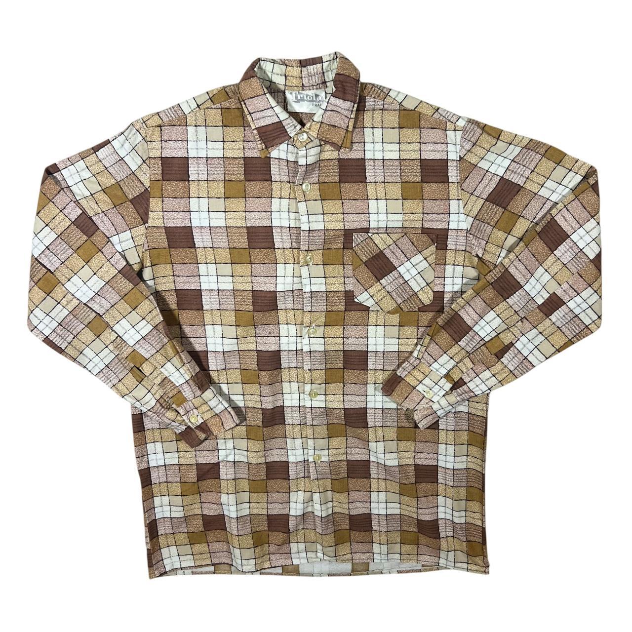 Vintage Triola Brown White Beige Mix Plaid Check Long Sleeve Cotton Flannel Shirt