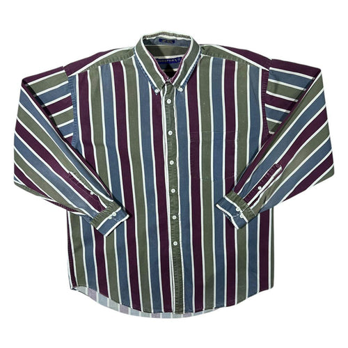 Vintage Norsport Multi Colour Block Striped Cotton Long Sleeve Button-Up Shirt