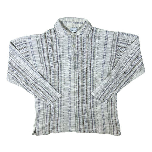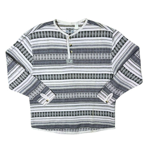 Vintage John Baner Multi Striped Patterned Long Sleeve Henley Button Shirt Top