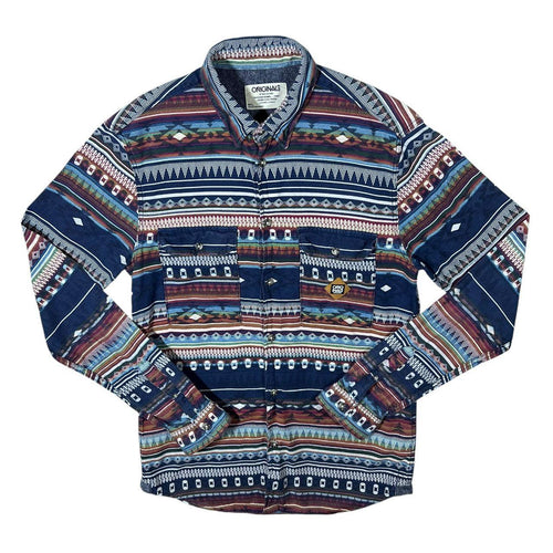 Vintage B-Style Crazy Aztec Patterned Lightly Padded Flannel Long Sleeve Shirt
